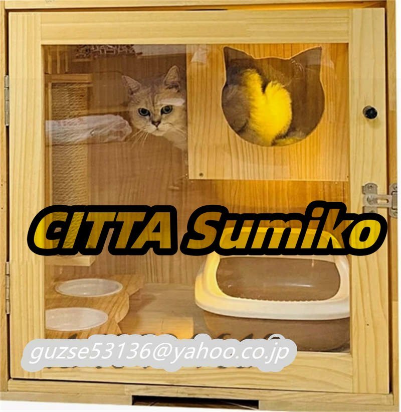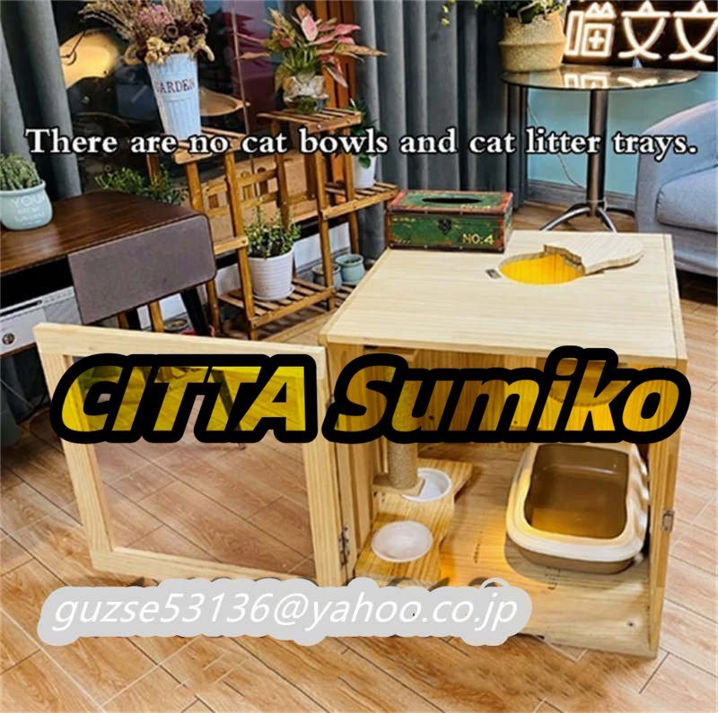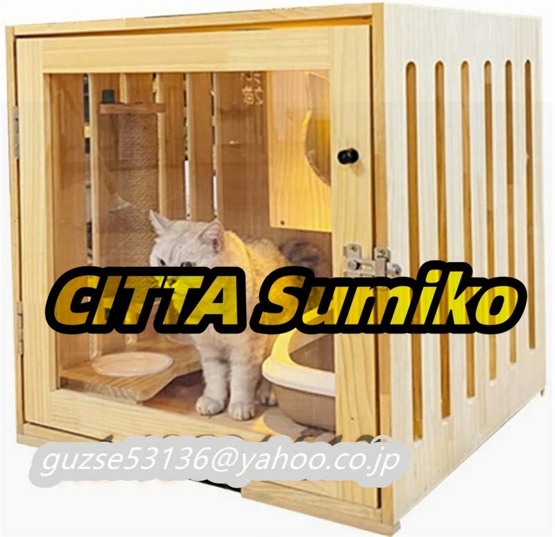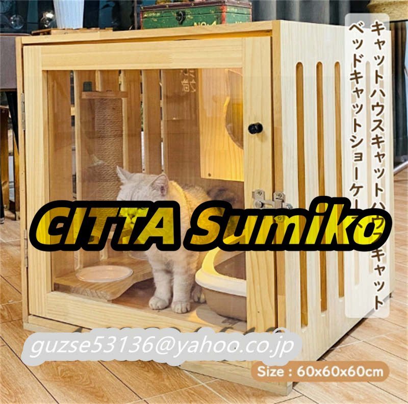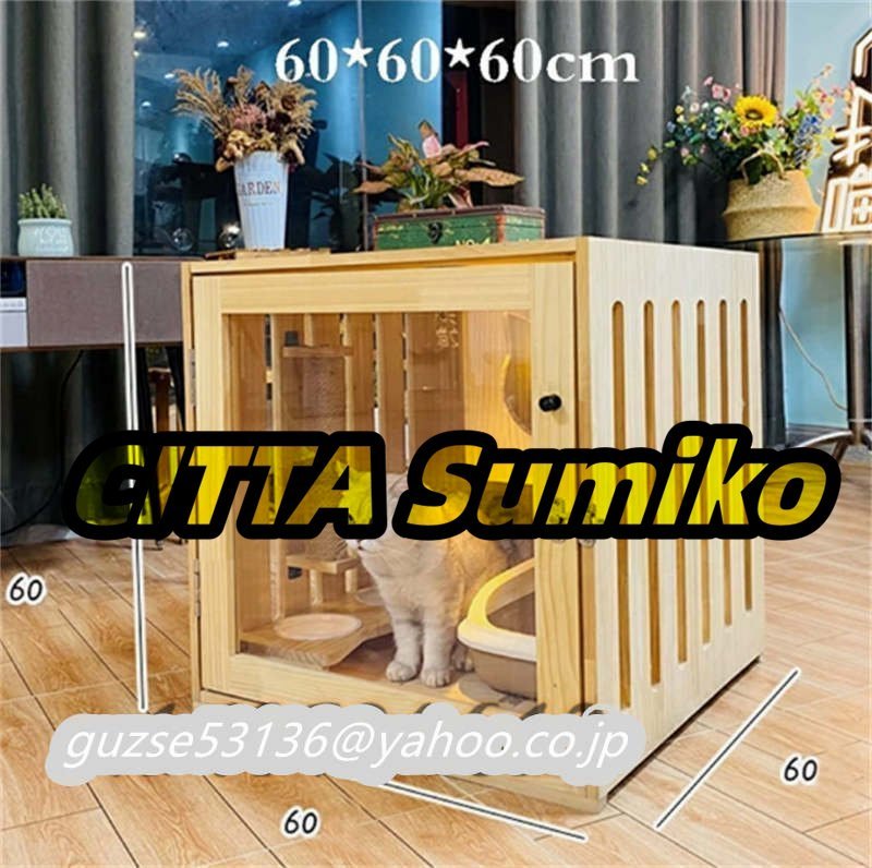 大好評★猫のアパートへ キャットベッド 松で作られた未塗装の家 3点セット 60x60x60cm キャットハウス 無垢材の猫のケージ