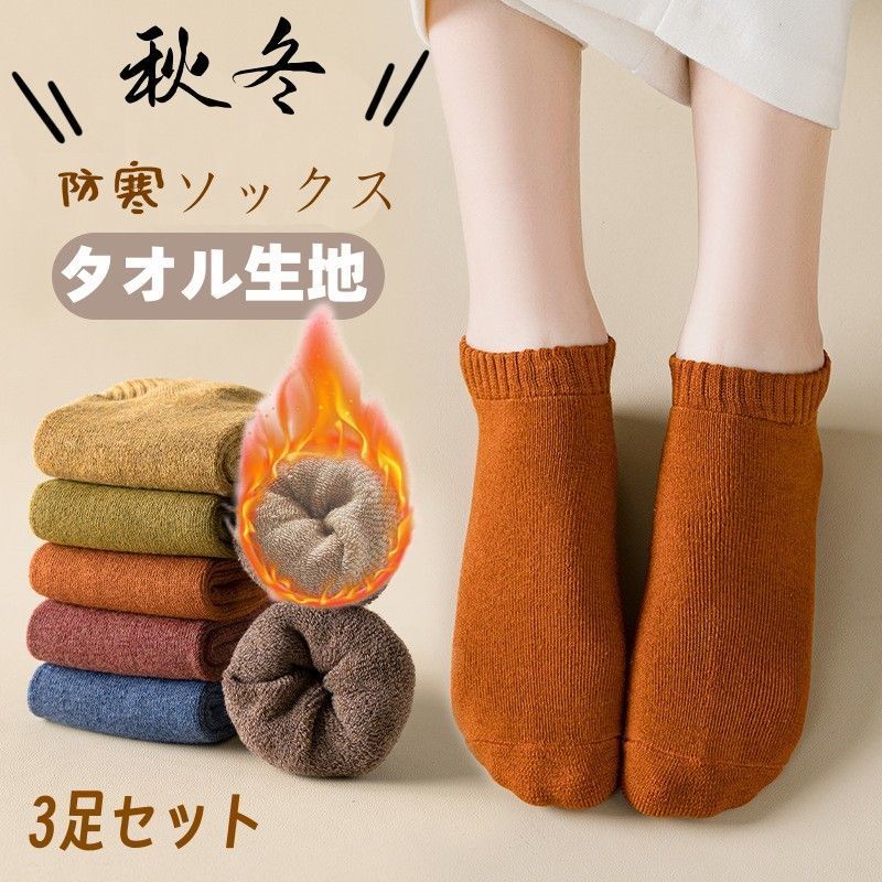 靴下 レディース 冬 暖かい ソックス 厚手綿 あったか お洒落 極厚裏パイル 防臭 3足組 寒い冬を乗り切る保湿効果 角質ケア 極暖 22-25cm