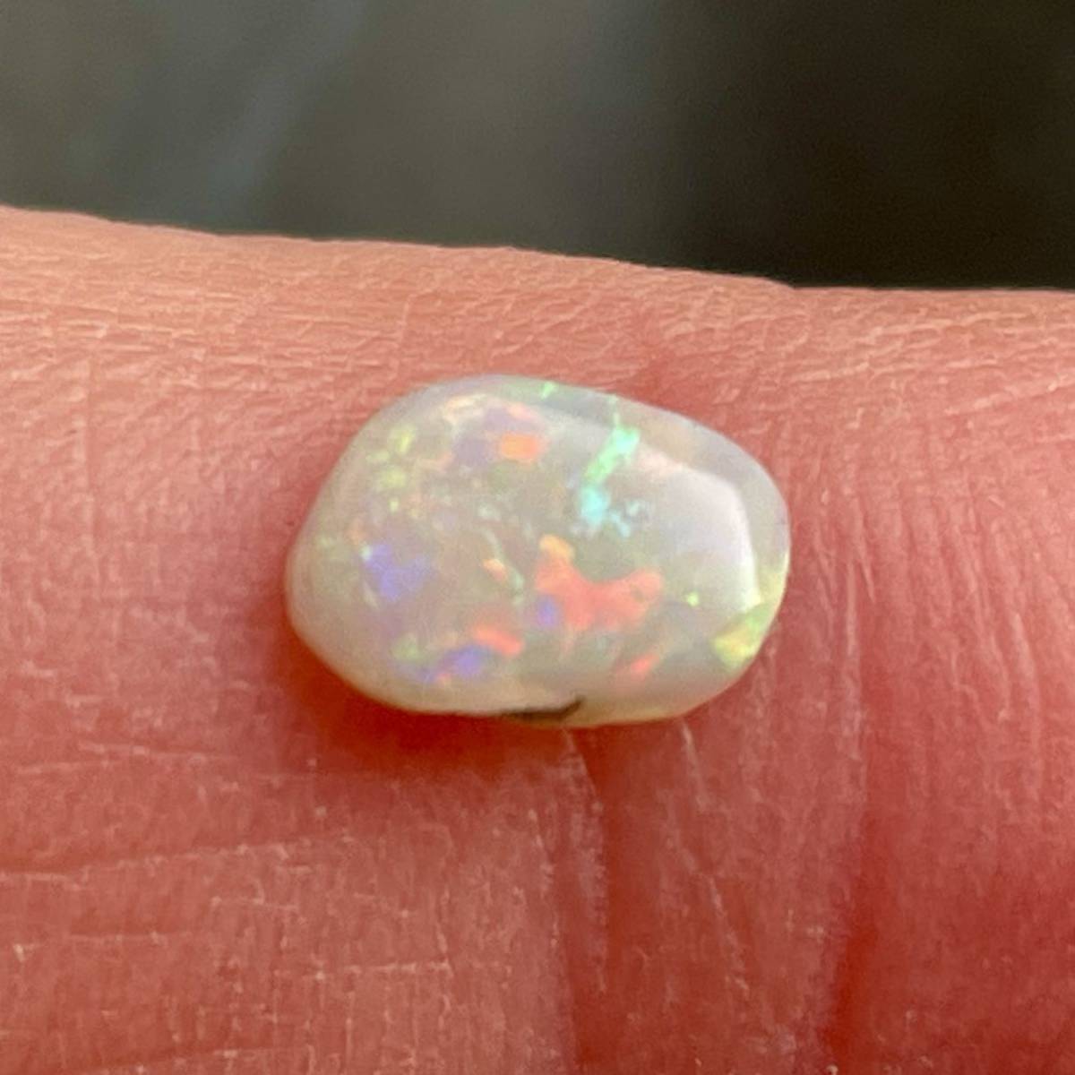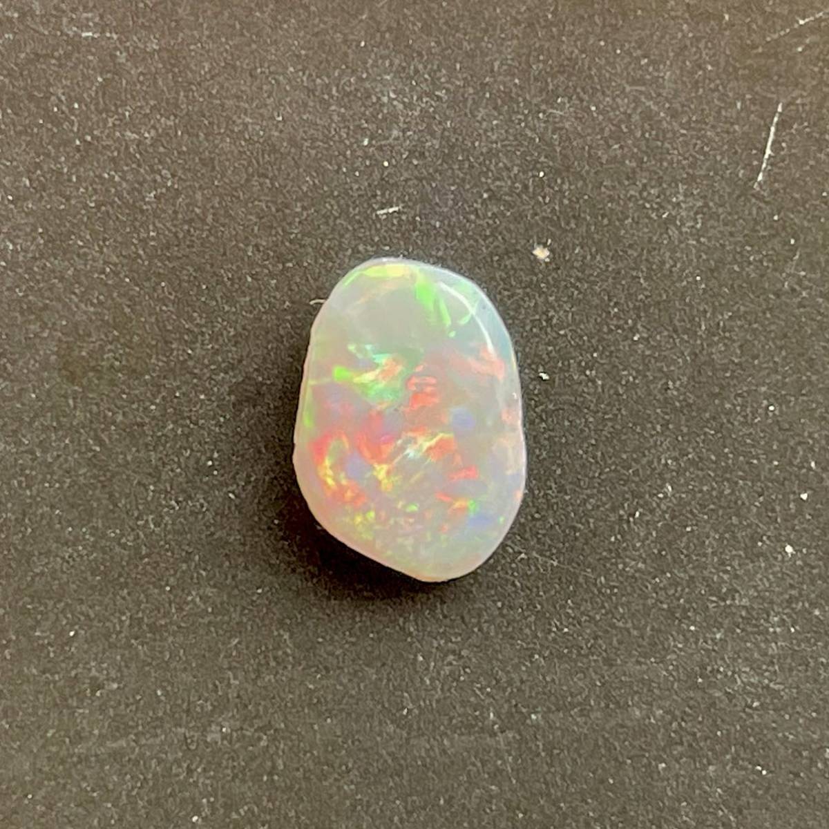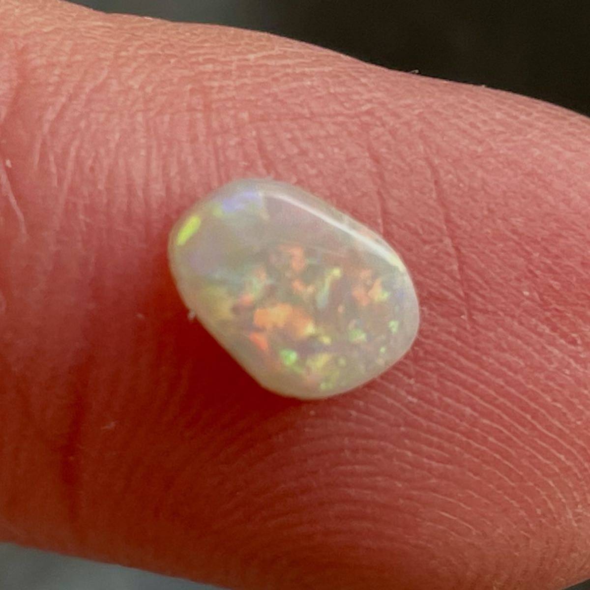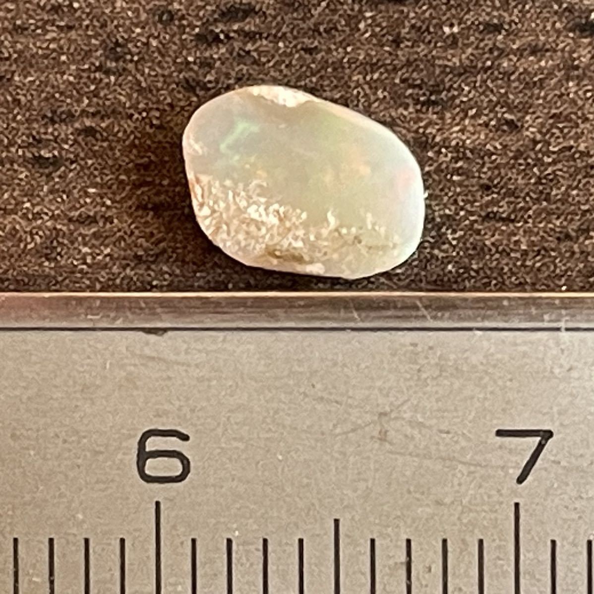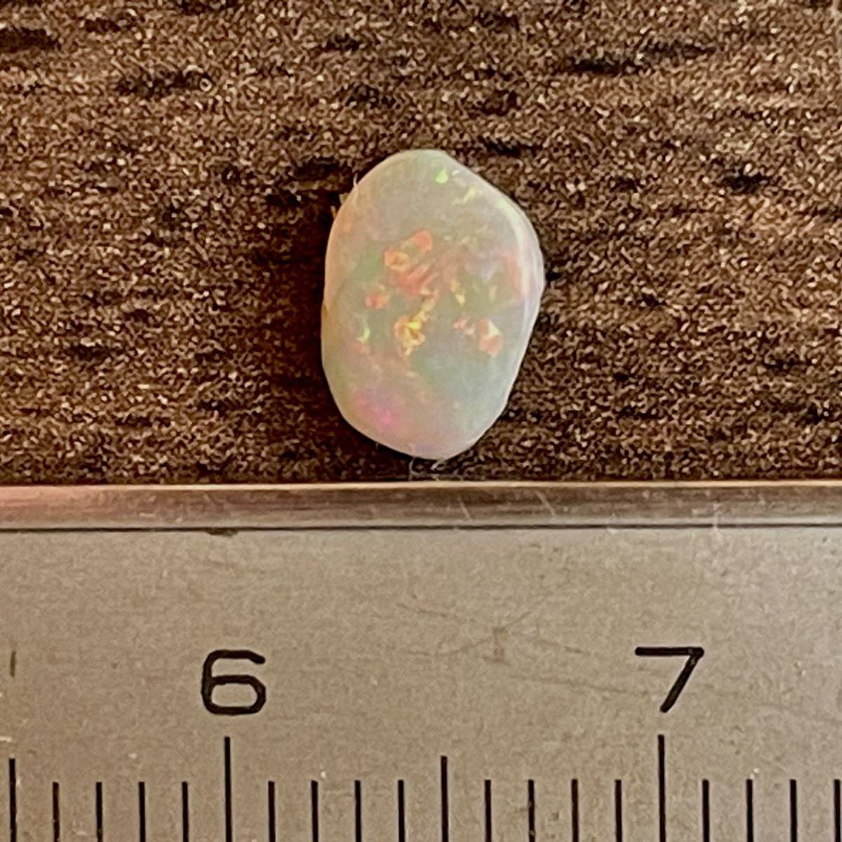 オパール豆知識1 オパールの色で価値の高い順に赤、オレンジ、黄色、緑、青、紫、です。このオパールにはたくさんの色が入っており遊色が楽しめます。