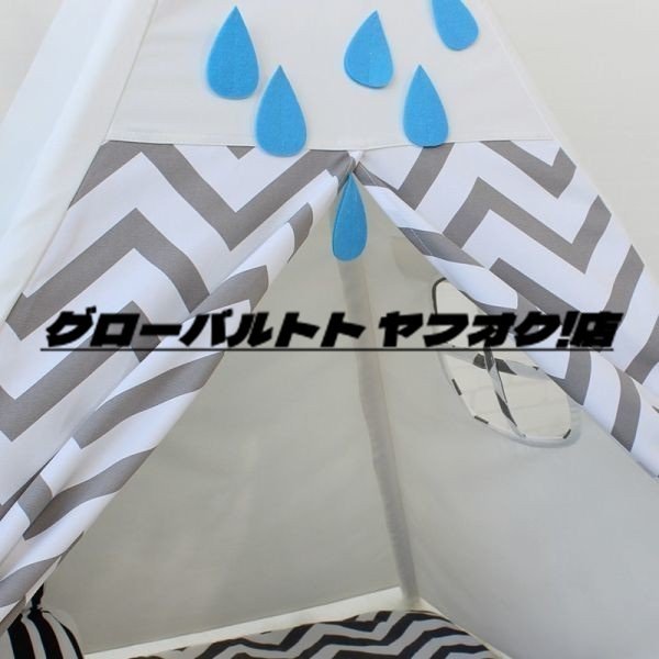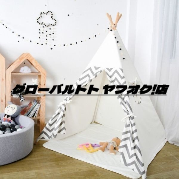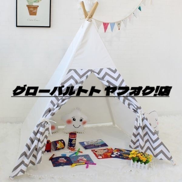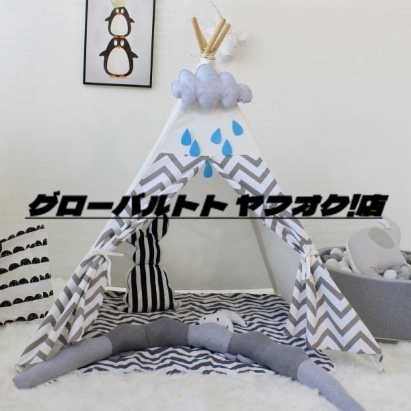 極上品 子供の テント 小屋 プレイテント 100% コットン キャンバス グレー ストライプ 子供 マット 屋内 屋外 玩具