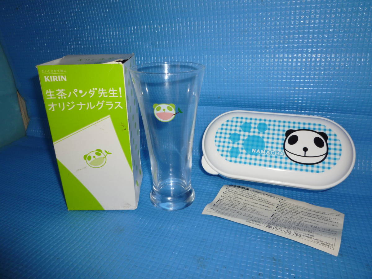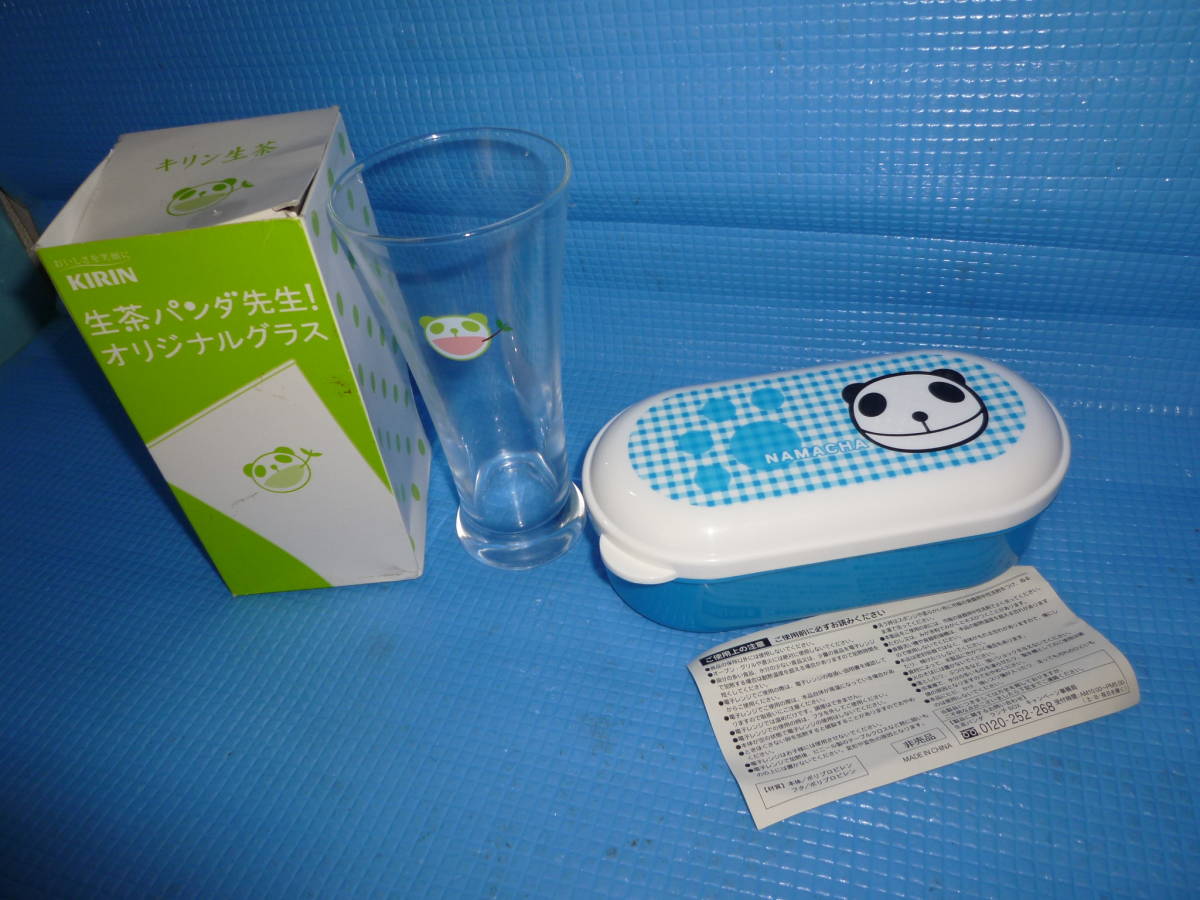 | b★未使用・非売品★2011年キリン生茶 パンダ先生! オリジナルグラス(口開き)とランチBOX(お弁当箱) | |