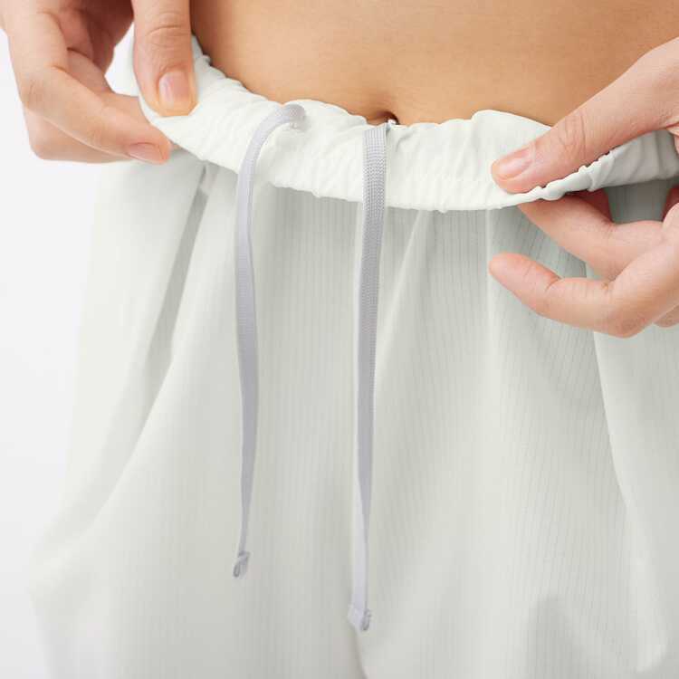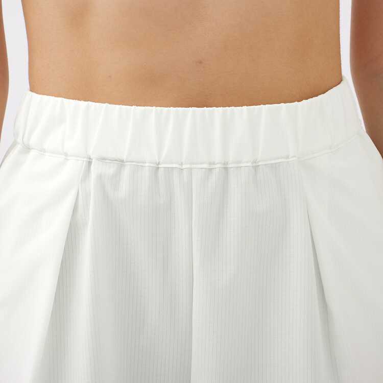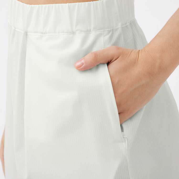 撥水、UVケア(UPF15-30、紫外線カット率85%以上)機能を持つ素材のショートパンツ。素材自体に小さな穴があいており、通気性に優れていて衣服内を快適に保ちます。腰回りはタックを多くとる事で、ゆったりめのシルエットとなっており、丈は長めの設定です。両脇にはコンシールポケット付き。デイリー、スポーツの行き帰りなどさまざまなシーンでおすすめのアイテムです。