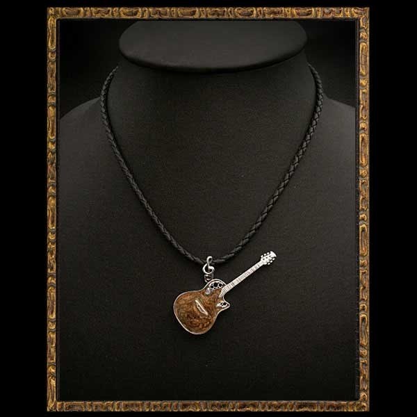 ![]() バチカン部分は音符(ト音記号)のモチーフになっています。細部までこだわった、目をひくデザインです!ギターの茶色い部分はエナメル加工仕上げです。新品ですが若干の細かいキズがある場合があります。その点にご了承お願いいたします。 |