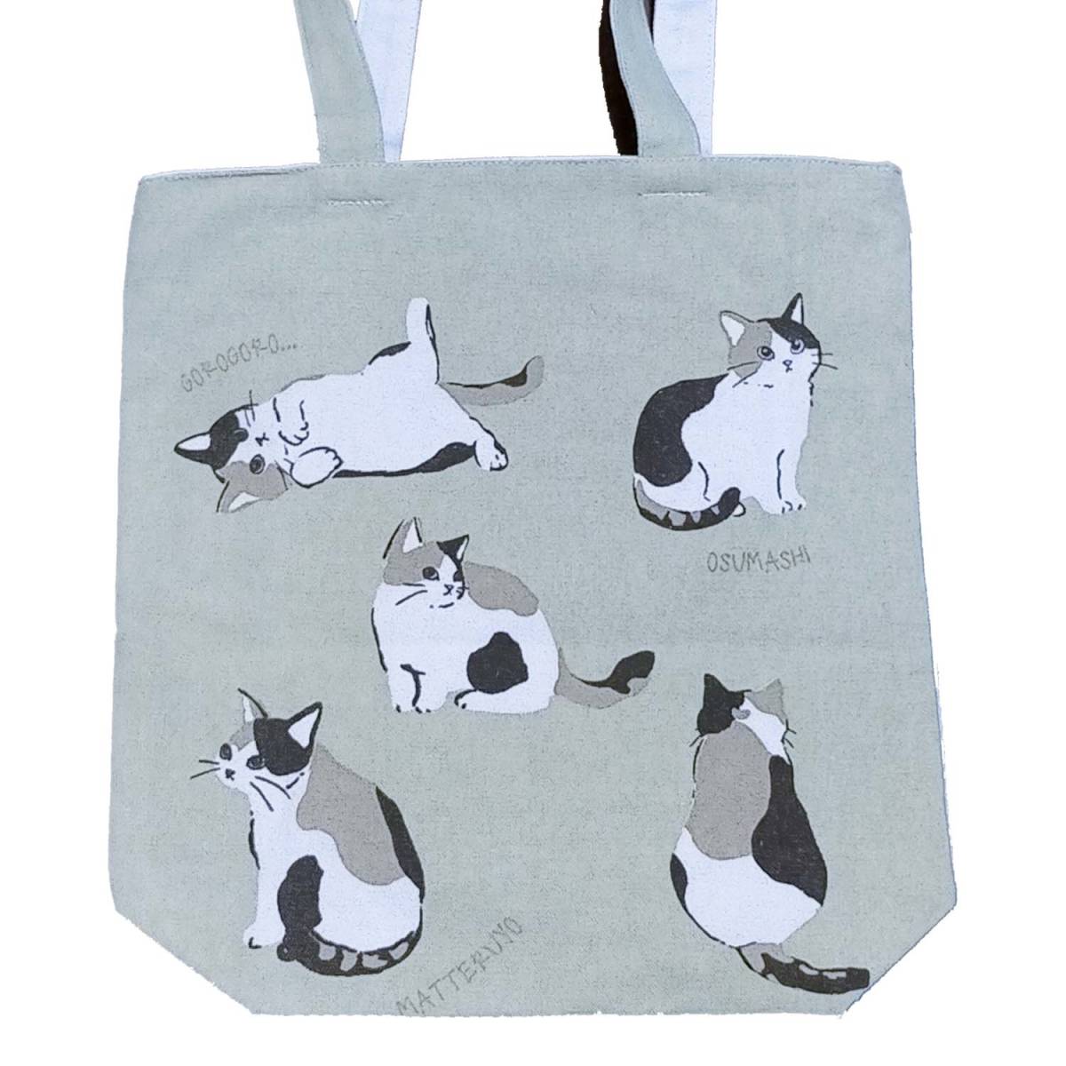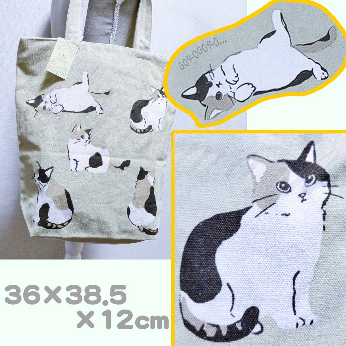 【ハチワレのミケネコ】トートバッグ ファスナー付 マチ付 ショルダーバッグ  帆布 キャンバストート 三毛猫