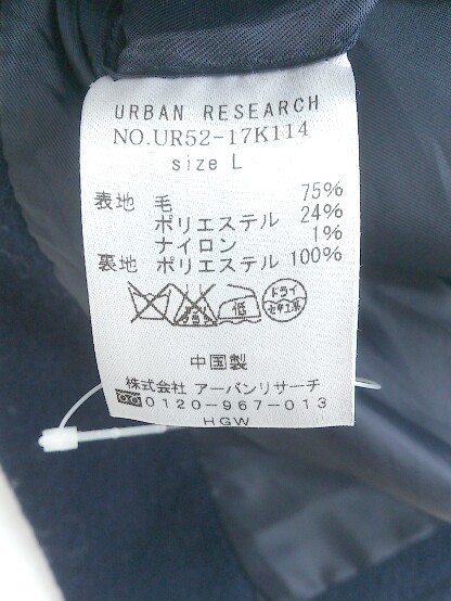 ◇ URBAN RESEARCH DOORS ウール 長袖 コート サイズL ネイビー メンズ P