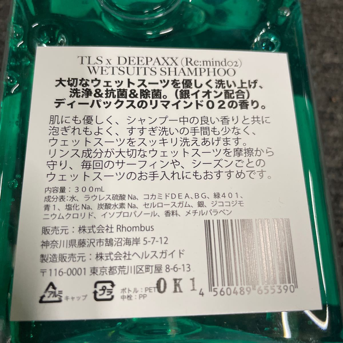 ウエットスーツ洗浄時の摩擦によるタメーシを軽減する、リンス成分か配合されており、新品のような清潔感を保てるウエットシャンフー。