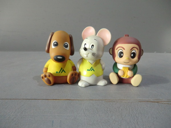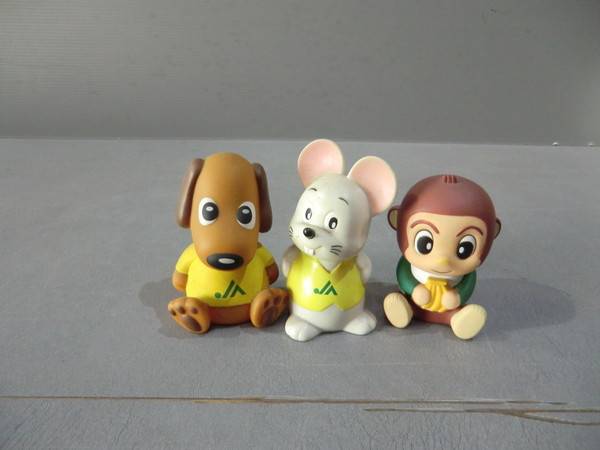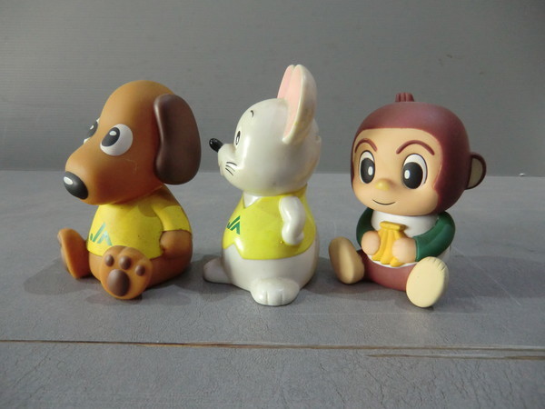 | JAバンク ノベルティグッズ 動物貯金箱 犬・ねずみ・サルの3個 まとめて出品します 各 高さ 10cmくらい ソフビ製かな? 犬・ねずみは 前にJAのマークが入ってます サルは 後ろにマークが入ってます バラでの対応は致しません 3体まとめての出品です 現状渡し | ||