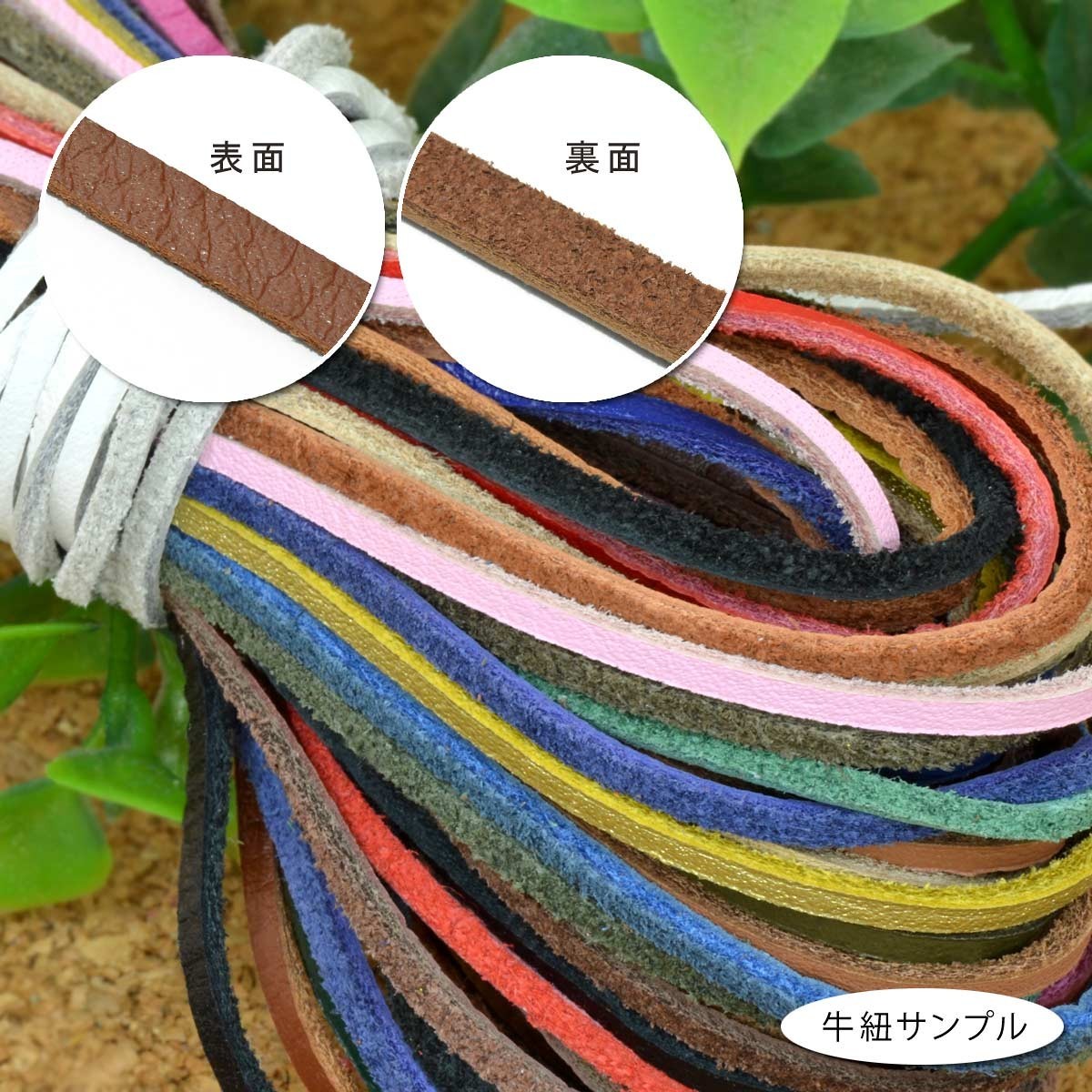 | 表面は手触りのよいつるつるとしたなめし加工、裏側はスウェード起毛加工が施された牛皮の平紐です。首の後ろで結んでネックレスとしたり、その他アイディア次第で色々なご用途にお使い頂ける革紐です。※日本製の素材を国内で加工した純日本製の紐です。 |