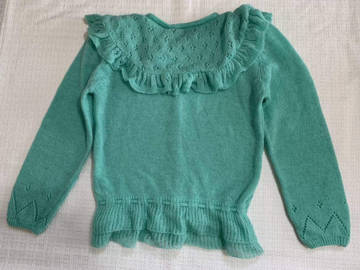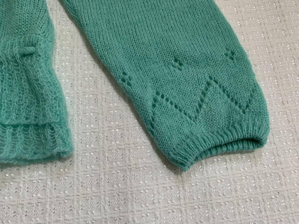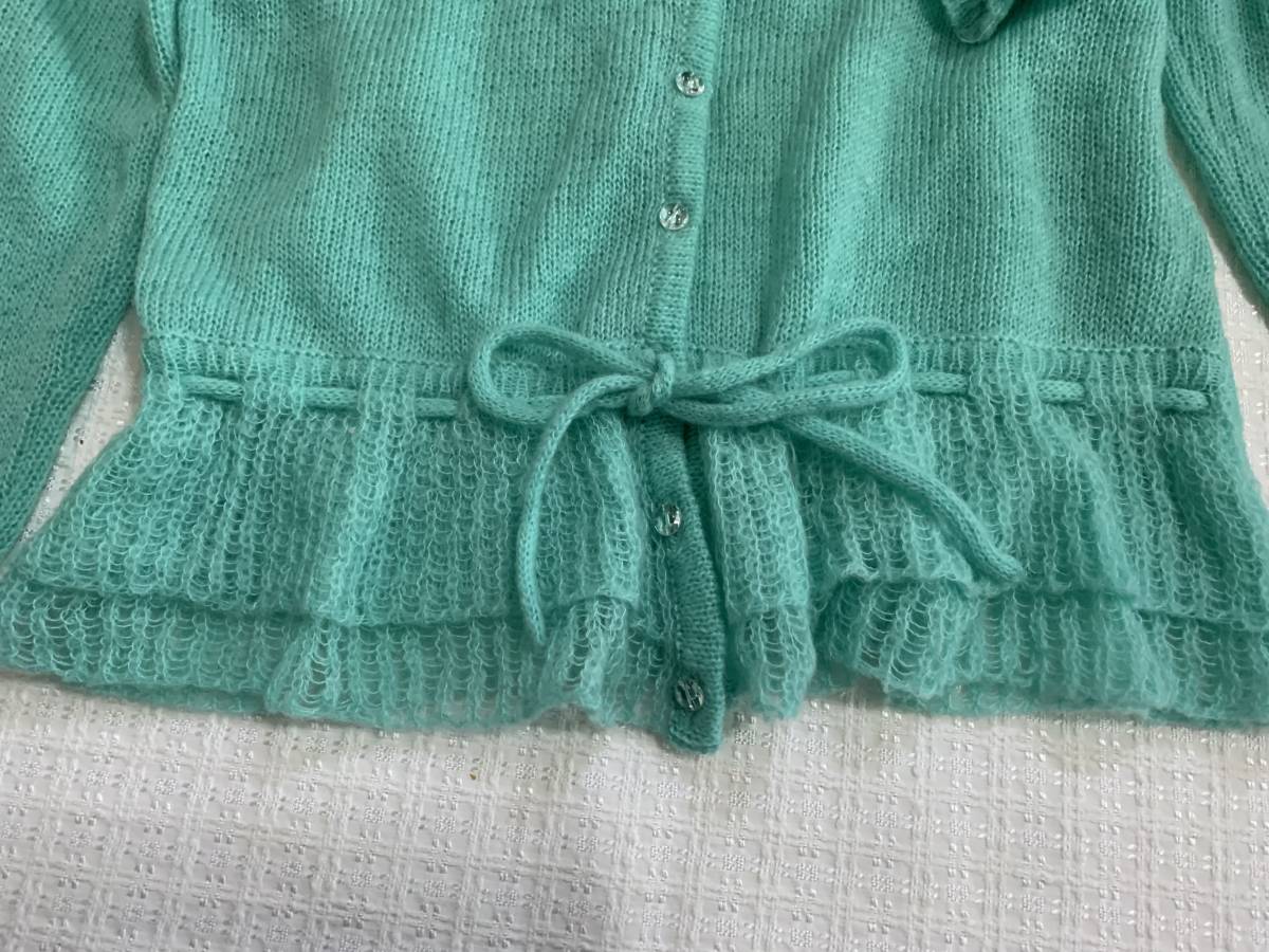 送料無料 ヴィンテージ レア 80年代 アイドル CANTWO キャンツーカーディガン ミントグリーン 透かし編 フリル ビッグカラー リボン 日本製