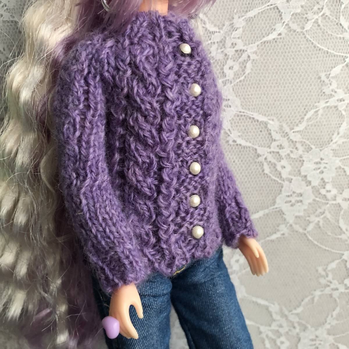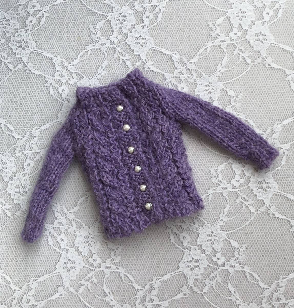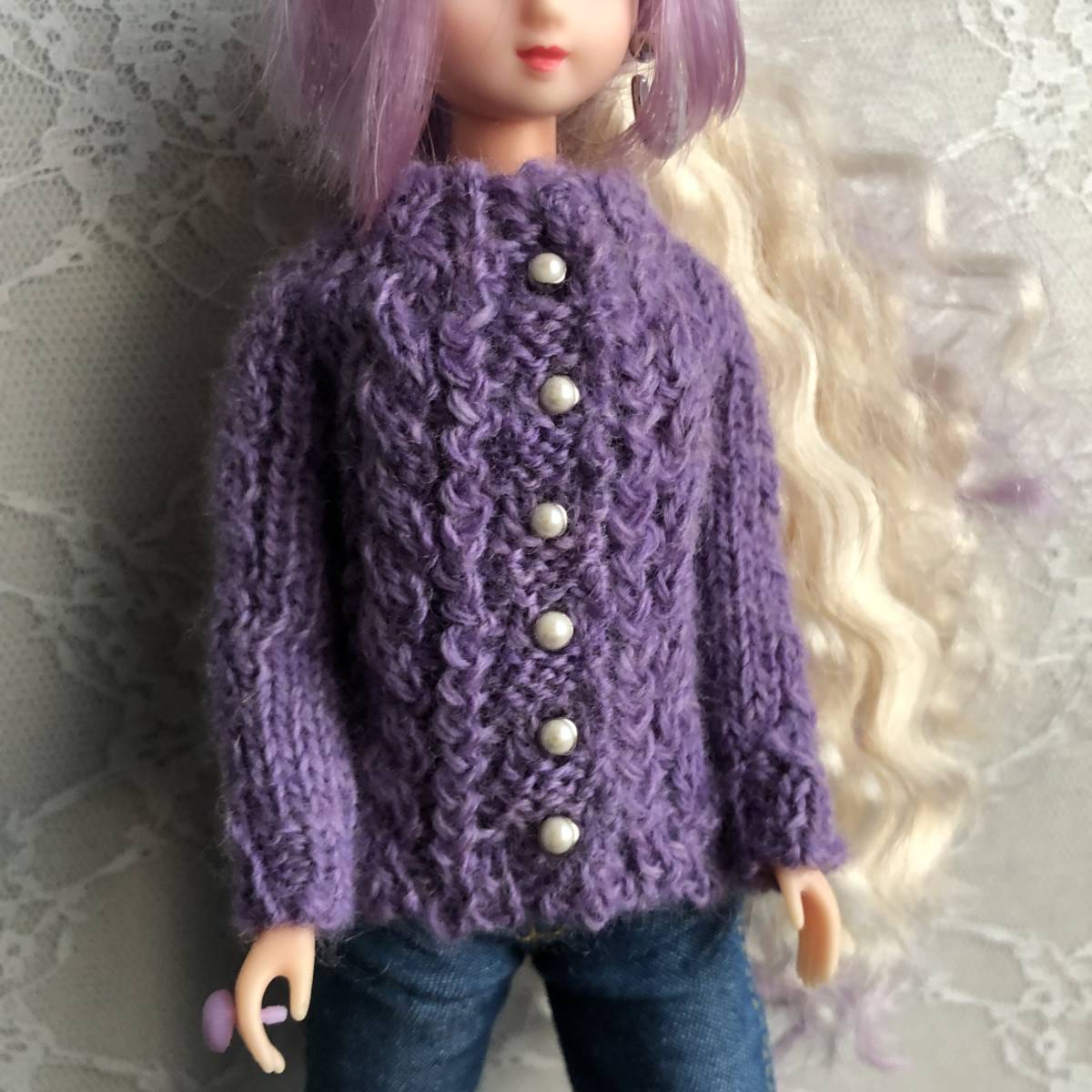 リカちゃんサイズ 人形ニットジャケット  人形カーディガン ハンドメイド 人形ニット 人形服 ミニチュアニット 紫