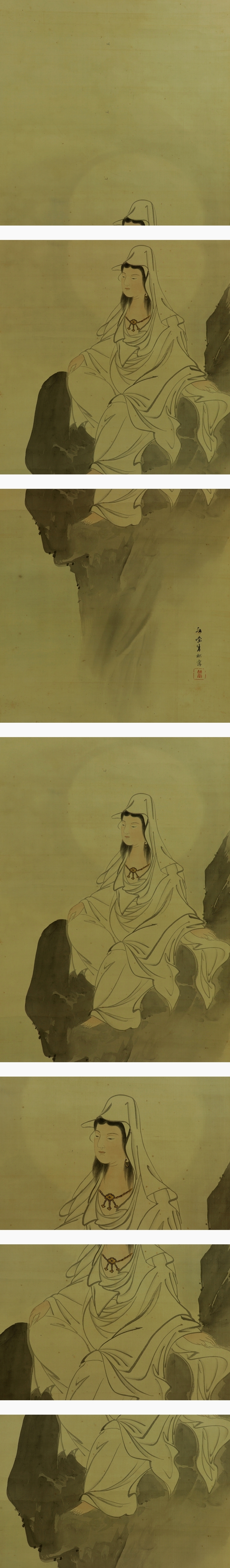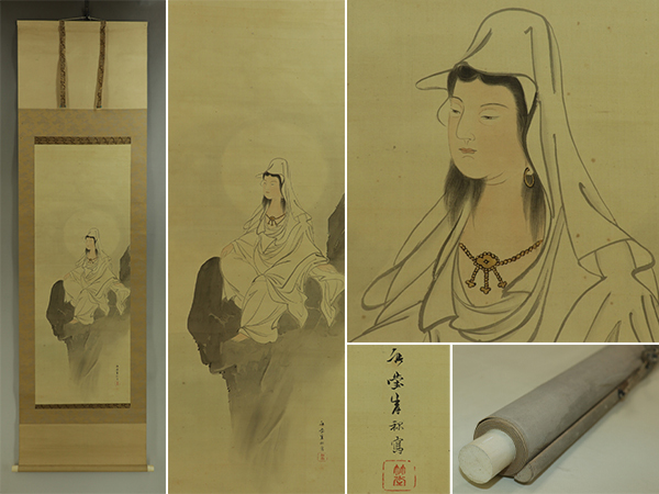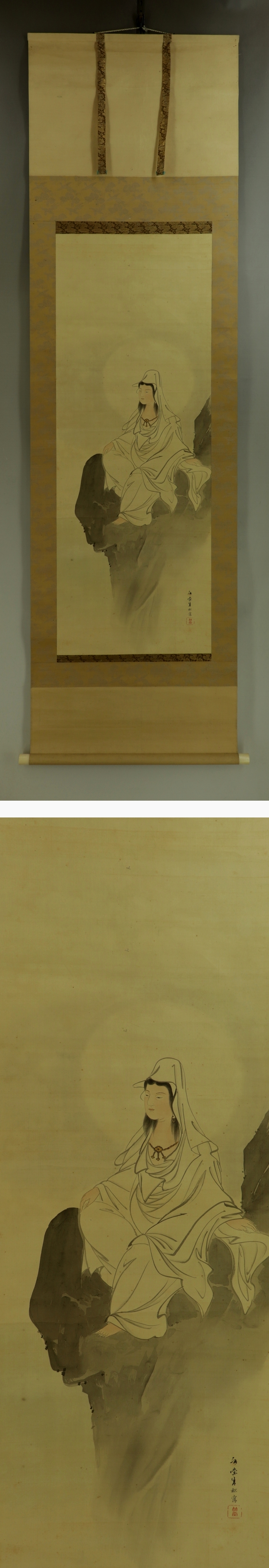 | №1802154【真作】岸竹堂【岩上観音】◆絹本◆合箱◆掛軸 | |