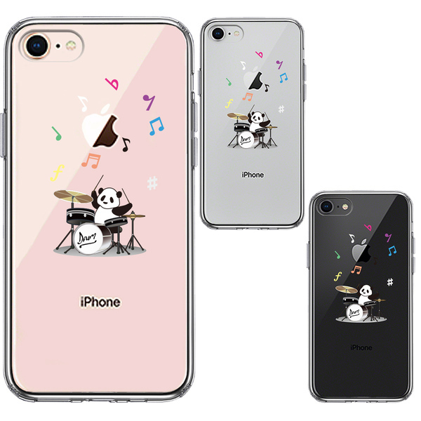 iPhone7 iPhone8 ケース クリア ドラム パンダ 音符 スマホケース 側面ソフト 背面ハード ハイブリッド