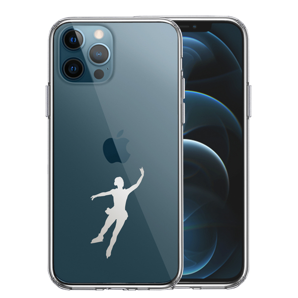 iPhone12 ケース クリア フィギアスケート 女子 グレー スマホケース 側面ソフト 背面ハード ハイブリッド