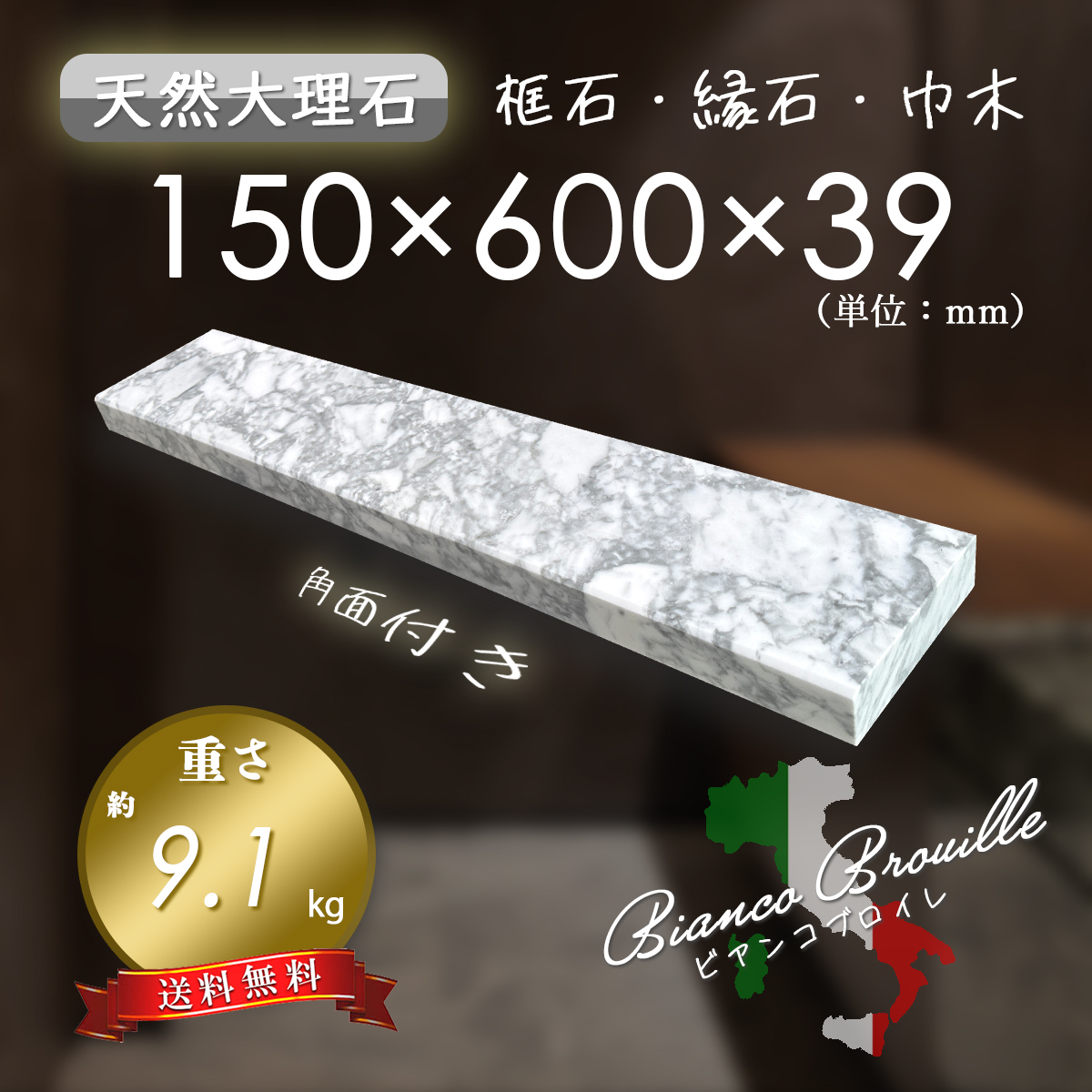 【高級天然大理石】 框石 ニッチカウンター ビアンコブロイレ 150mm×600mm×39mm 角面付き 新品 即決 送料無料 超特価