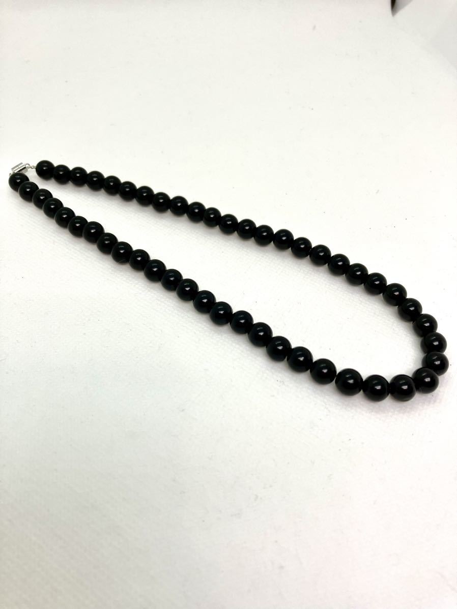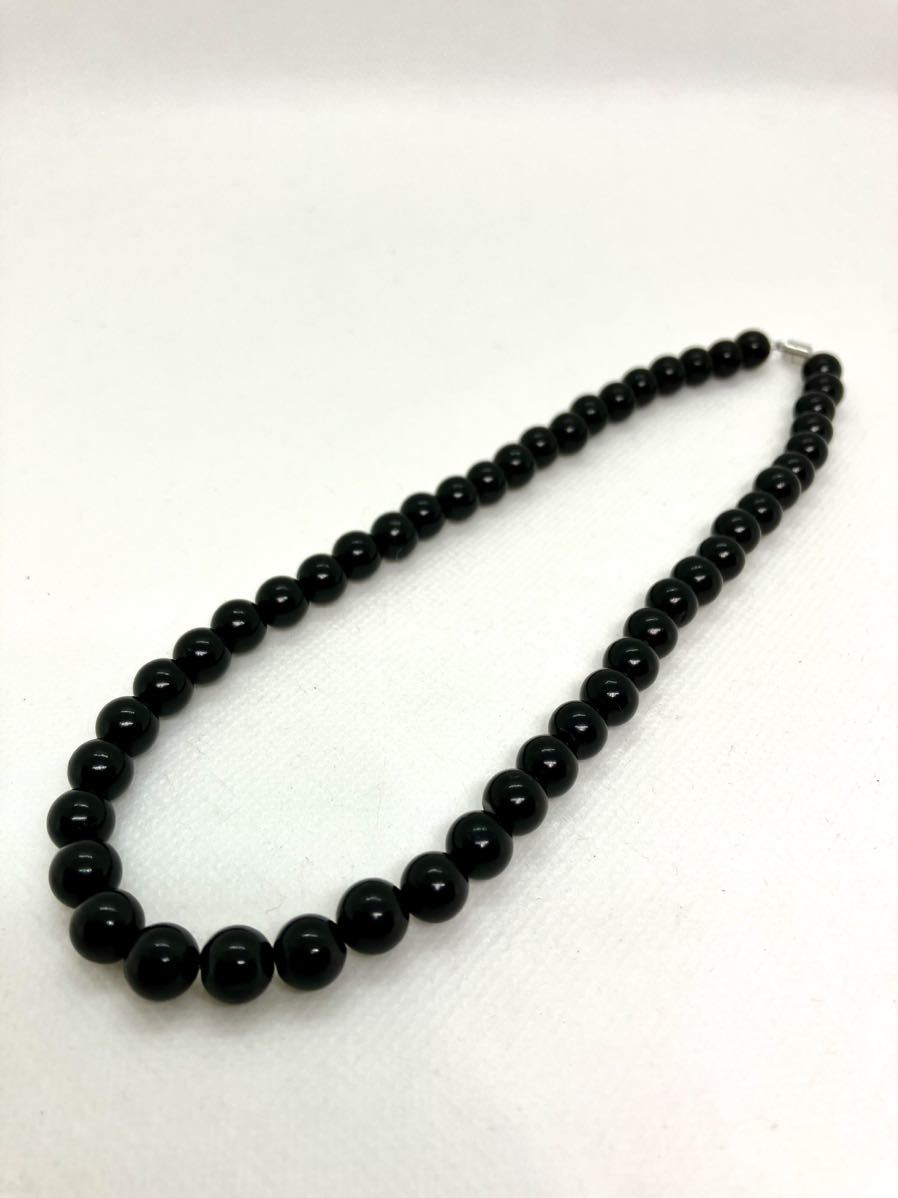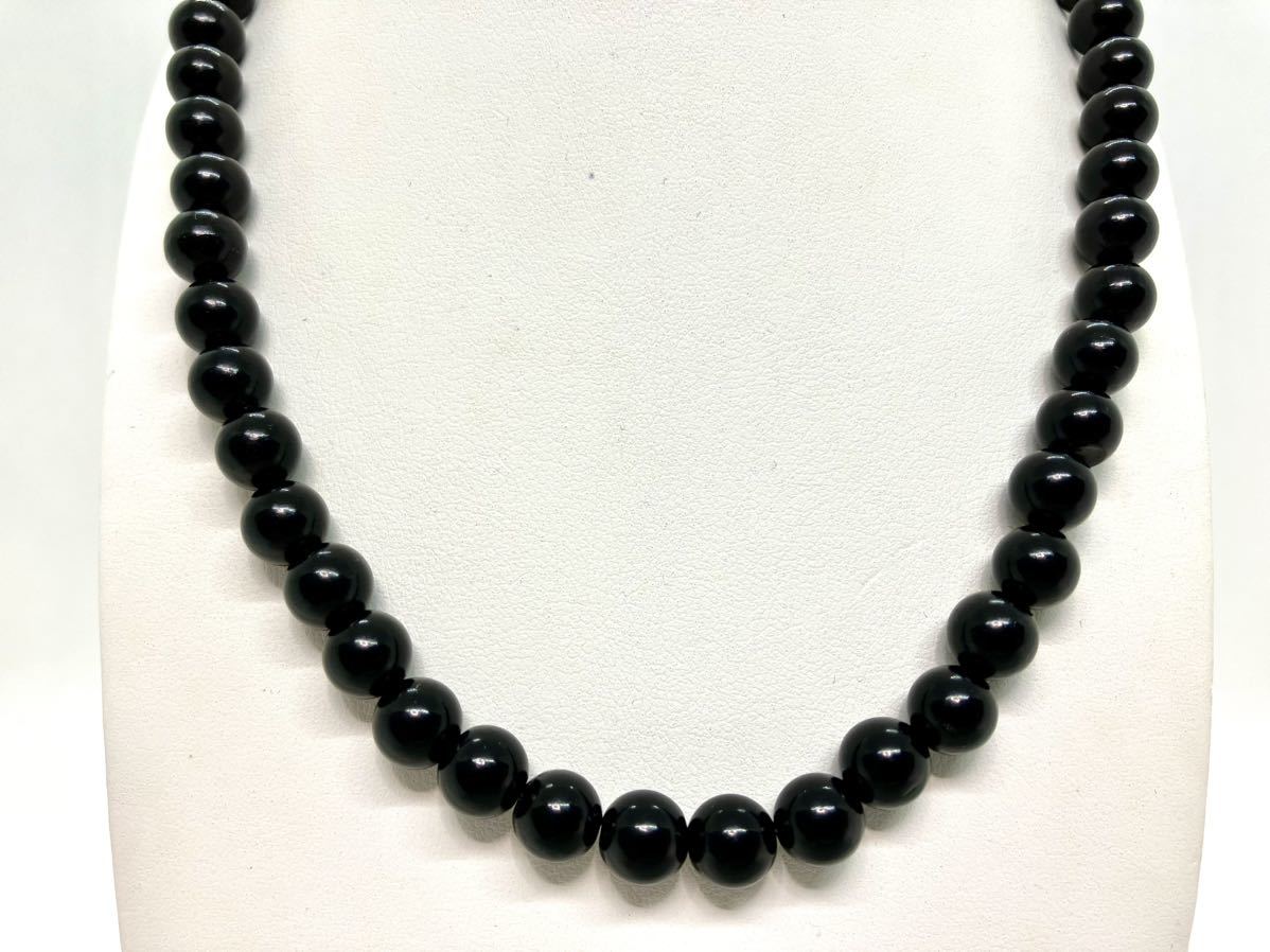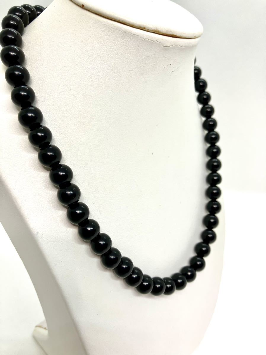 新品の天然ジェット (8mm丸玉) 40cm ネックレスです。