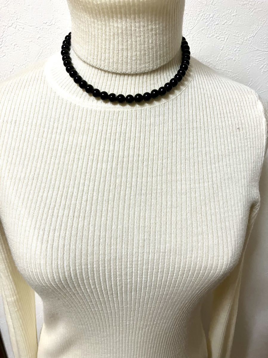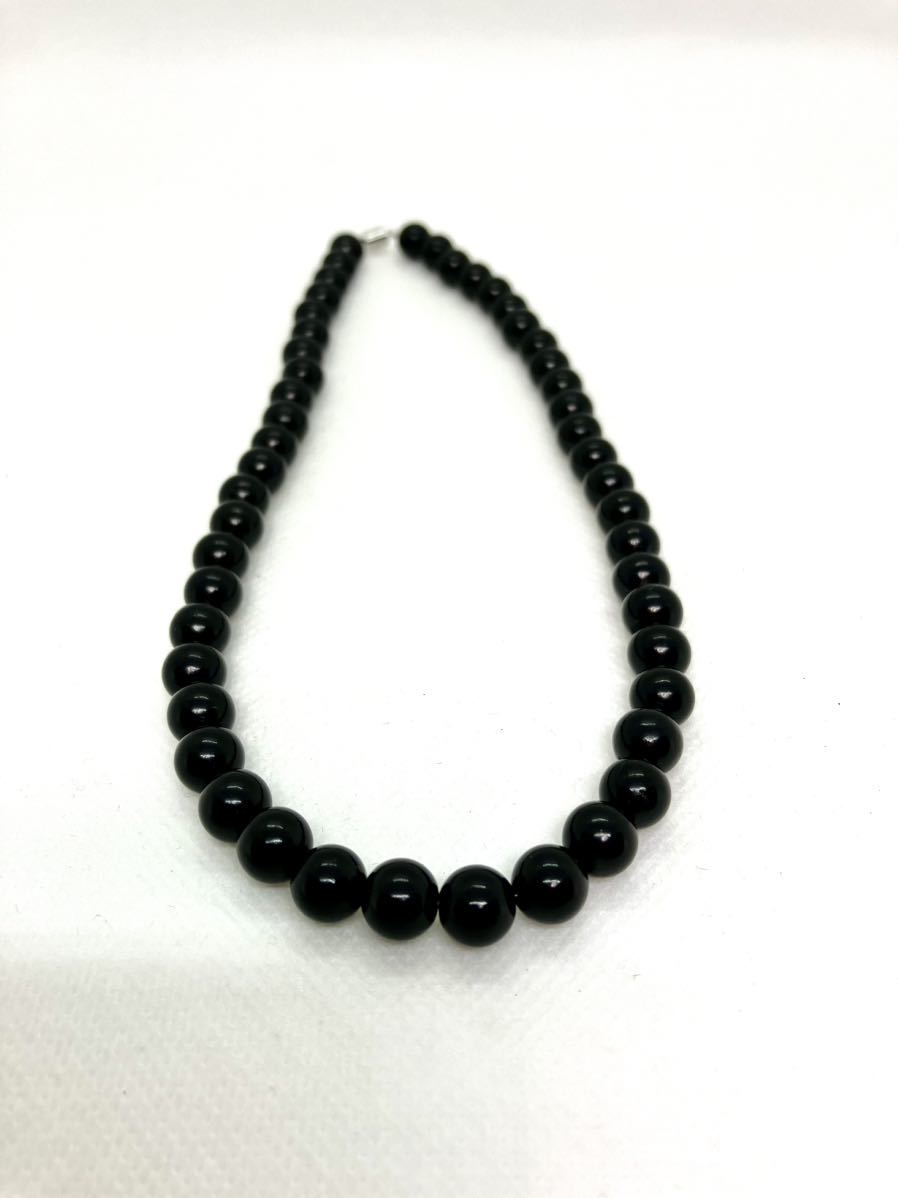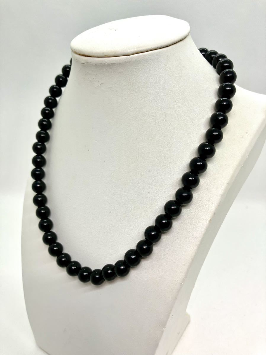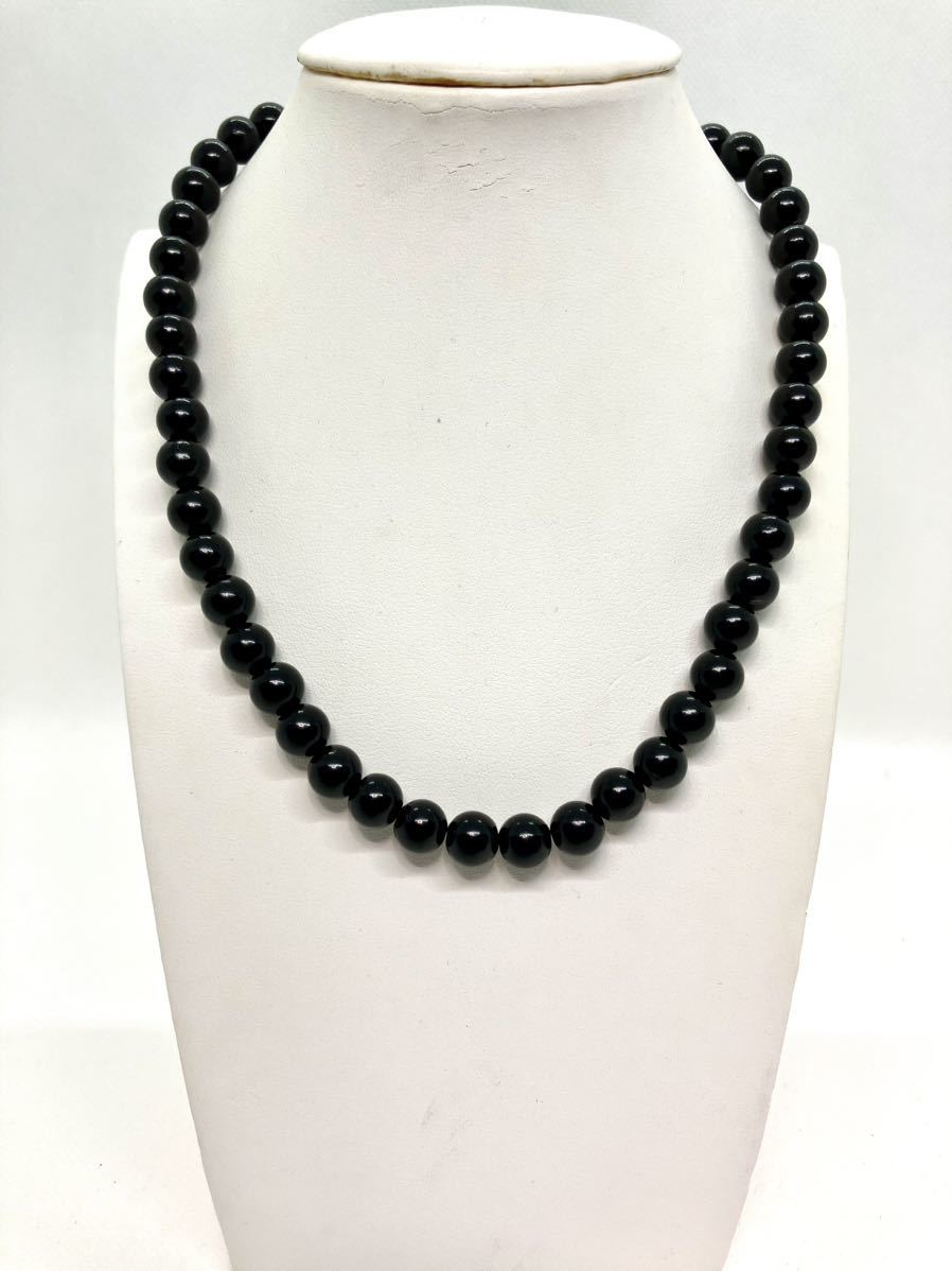 新品の天然ジェット (8mm丸玉) 40cm ネックレスです。