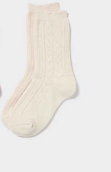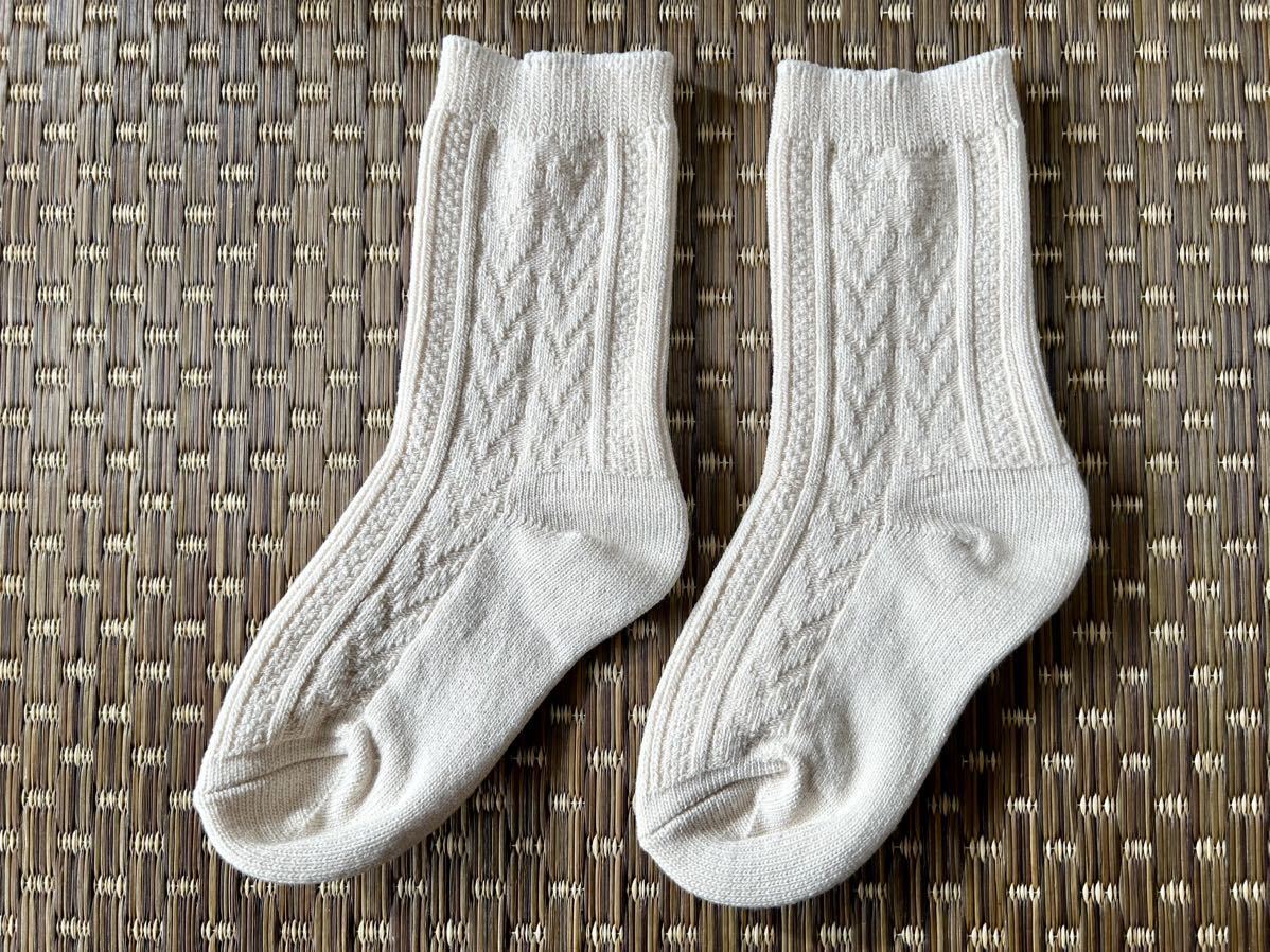 ユニクロ キッズ ガールズ ヒートテックソックス手編み風のフェアアイル柄アイボリー(白系) 16-20サイズ 16.17.18.19に 1足 防寒 です(^^)