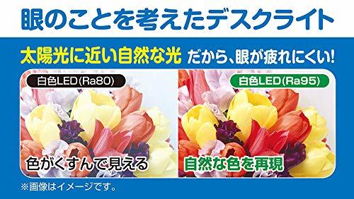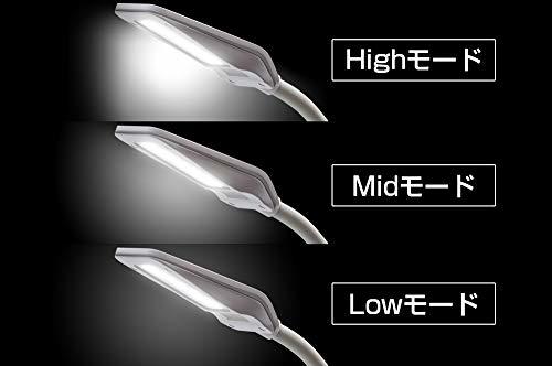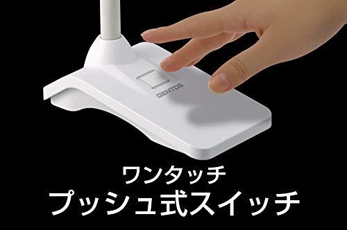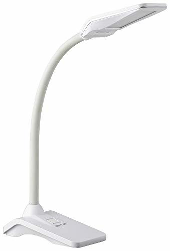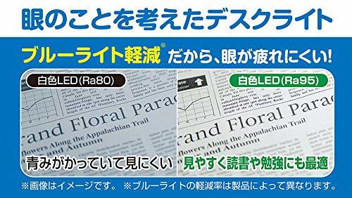 ・ホワイト DK-R169WH・サイズ:約幅75×奥行250×高さ295mm・ 電源:AC100V 50/60Hz・ 消費電力:4.5W・ 期間:・ セット内容・付属品:本体、ACアダプタ・ 明るさ:High/440ルーメン、Mid/250ルーメン、Low/65ルーメン・ 本体重量(kg):0.583段階調光可能、眼のことを考えたデスクライト【眼のことを考えたデスクライト】高演色(Ra95)LEDによりブルーライトを軽減(※)し、太陽光に近い自然な光を実現。眼が疲れにくい※ジェントスの旧製品(平均演色評価数Ra80のLEDを使用)と比べ、ブルーライトを約30%軽減【3段階調光】スイッチ操作で明るさを3段階に調節できるフレキシブルアームで光の方向・向きを自由に調節できるワンタッチプッシュ式スイッチ