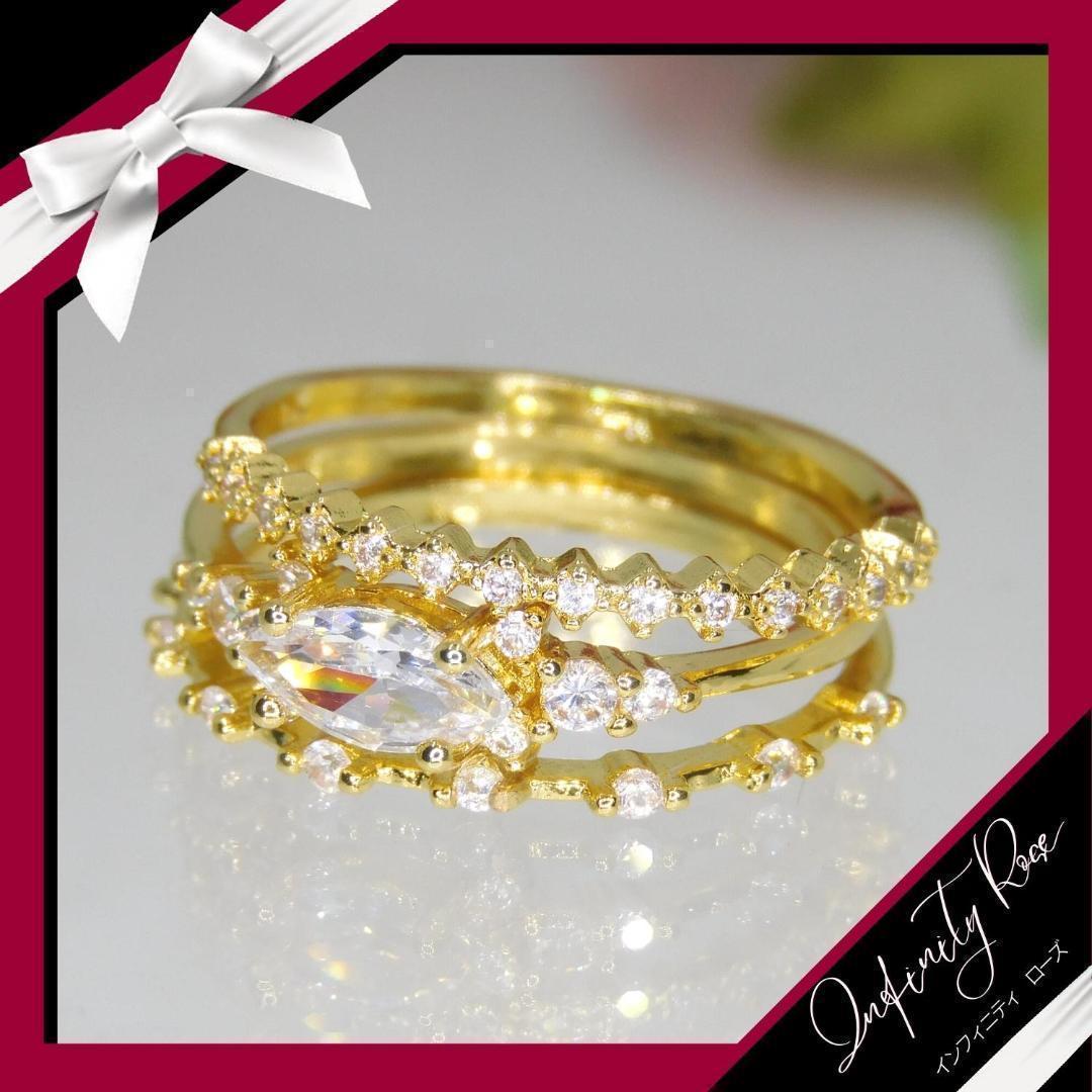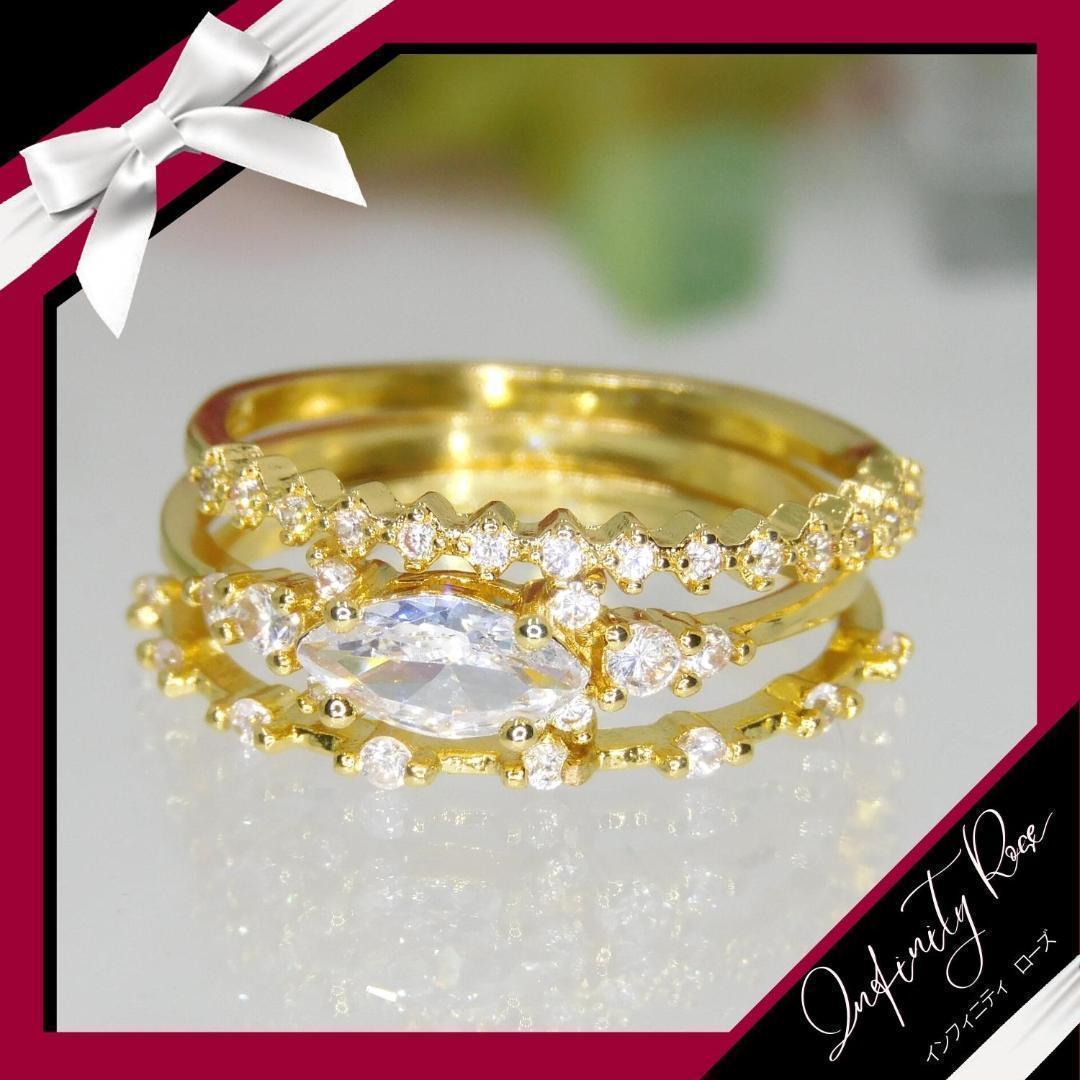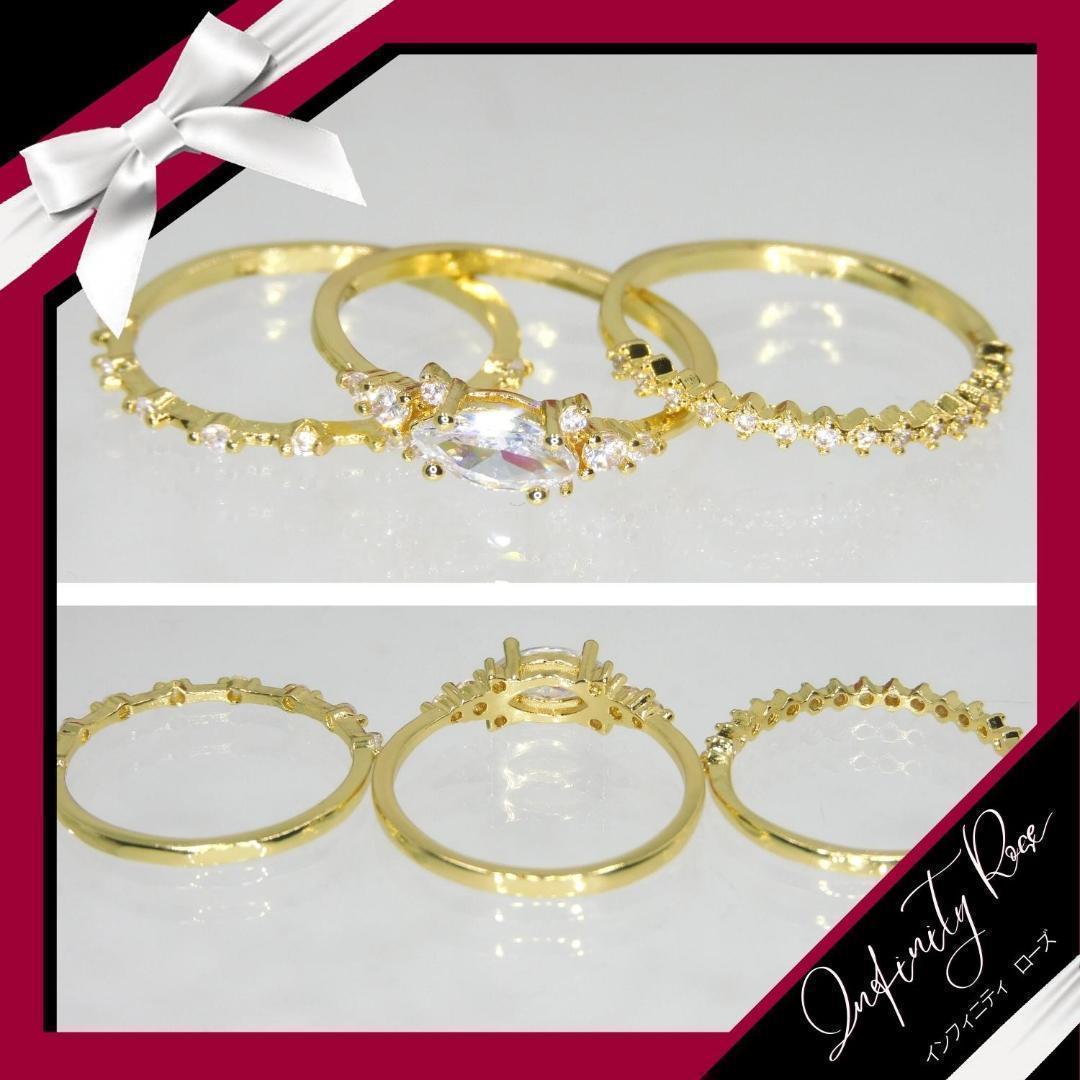 小粒のクリスタルリング2本と大きめキュービックジルコニア(CZ)1本の3本豪華セット。