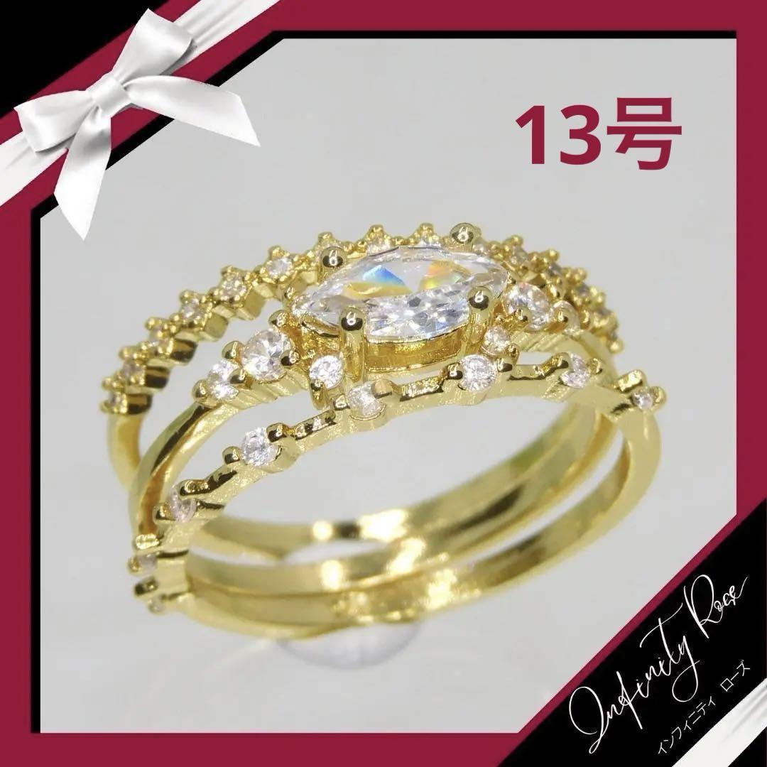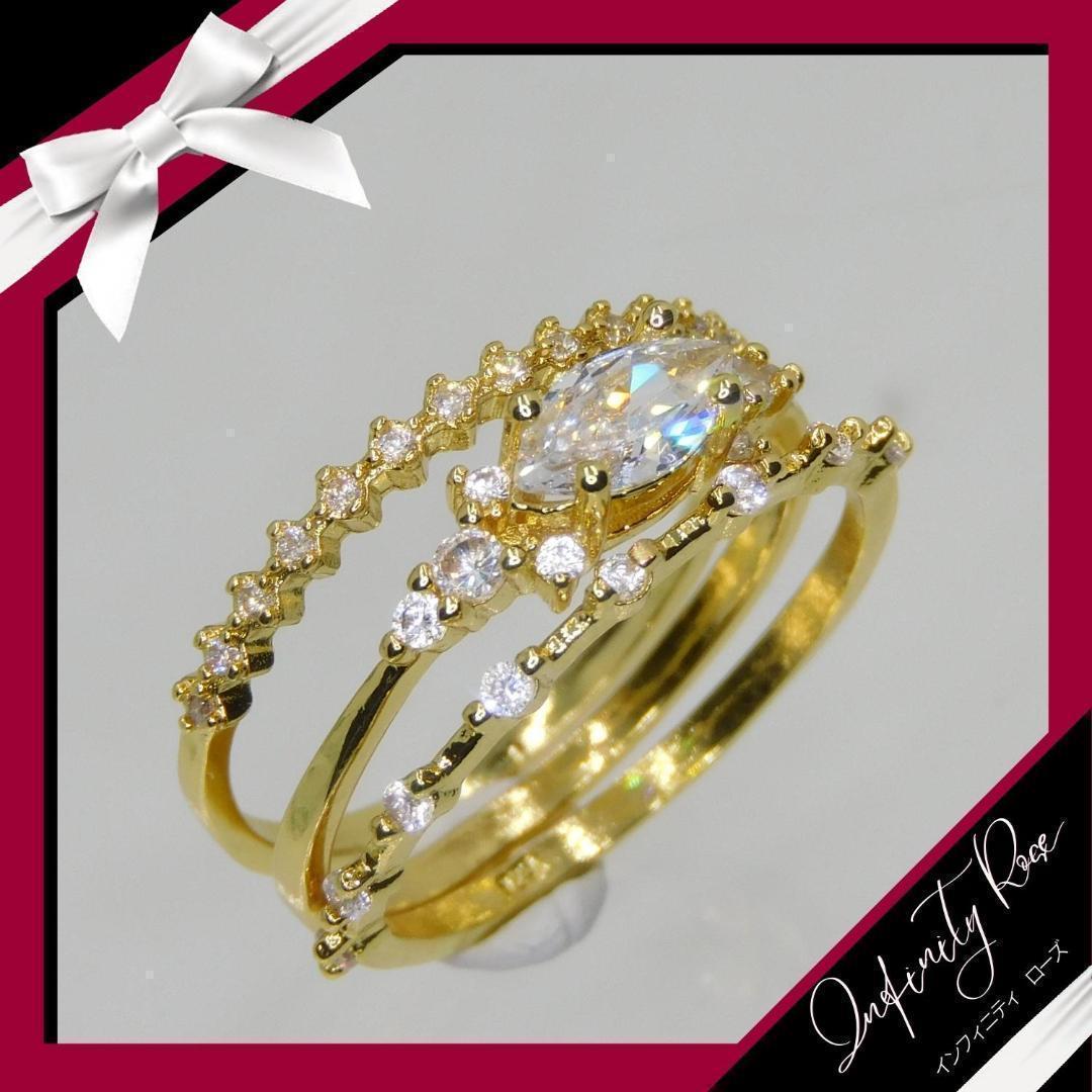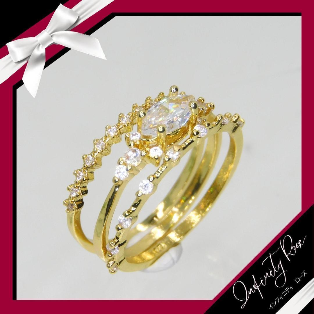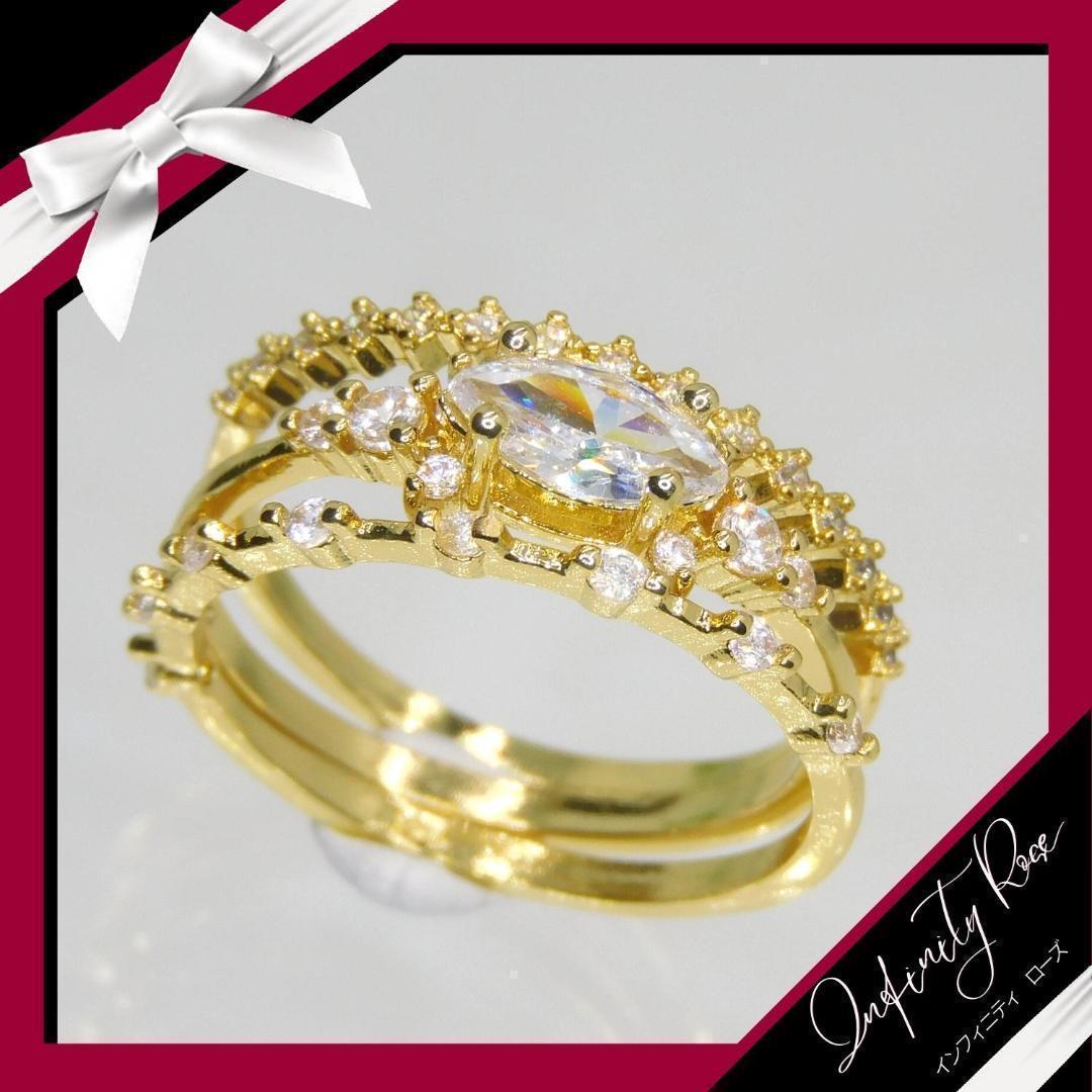小粒のクリスタルリング2本と大きめキュービックジルコニア(CZ)1本の3本豪華セット。