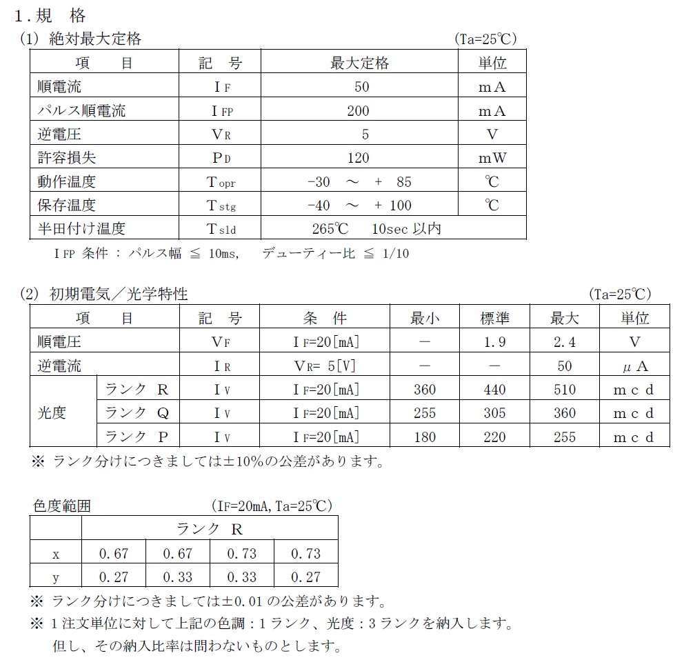 赤 LEDランプ Φ5 オーバル 3000個 NSPR546CST RED LED レッド 日亜 (NICHIA) となります。 ●仕様 メーカー : 日亜 (NICHIA) 発光色 : 赤 サイズ : Φ5 型番 : NSPR546CST (テーピング品) 手元に LED仕様書がありますので、必要があれば印刷して同封します。 入札時に 仕様書印刷希望 とお知らせください。 1箱 3000個 新品未開封です。 ※数量は数えてませんので誤差は予めご了承ください。 新品、未使用ですが 長期保管品のため ジャンク扱い(品質保証不可)にて、 ノークレーム、ノーリターンを了解できる方のみお入札願います。 長期在庫品に付き多少汚れ等御座います。 リードは変色している球がありますが予めご了承ください。 LEDチェックの為、テーピングレールの先頭1球の点灯チェックを行ってます。 複数欲しい方は質問いただければ、在庫を確認いたします。 他にも多数出品していますので、是非ご覧ください。 |