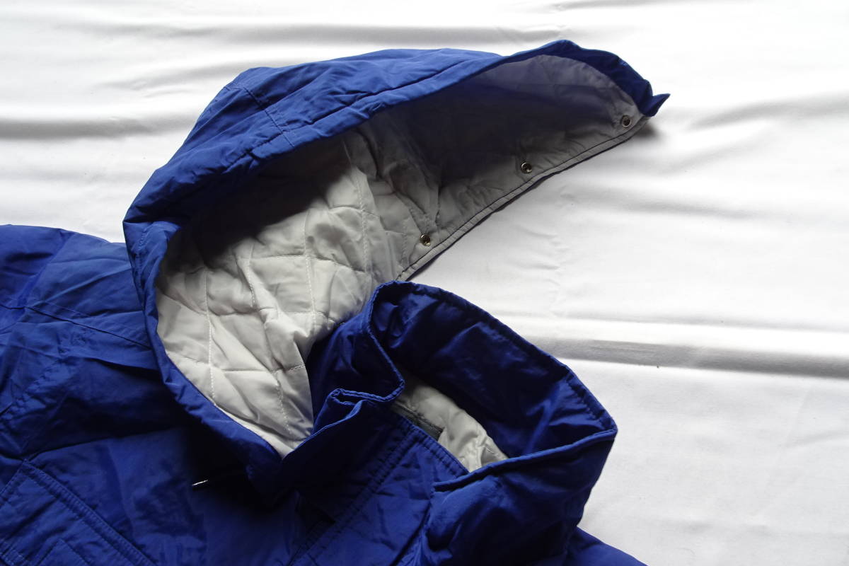 フードは、首ぐりスナップボタンで取り外し可能です。
