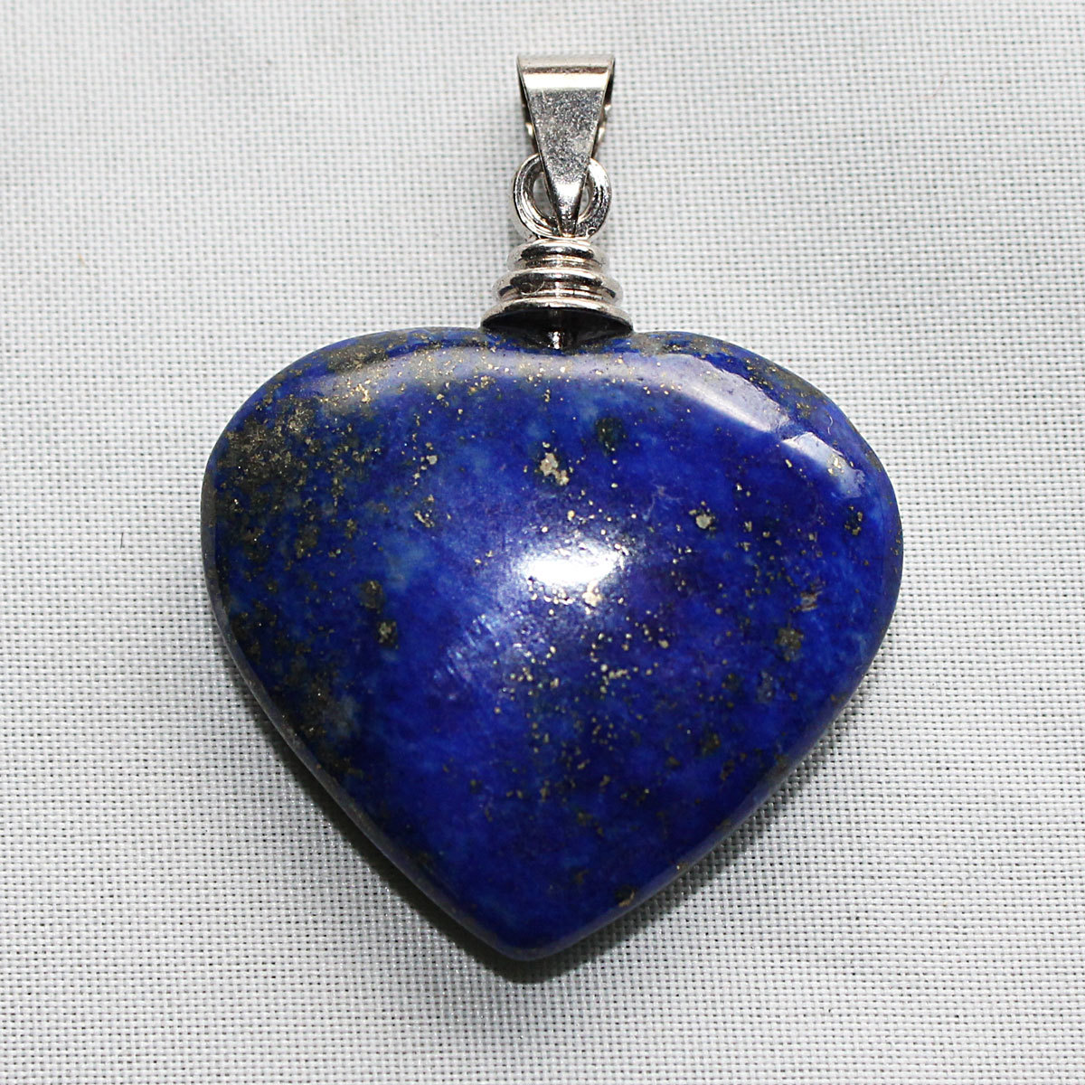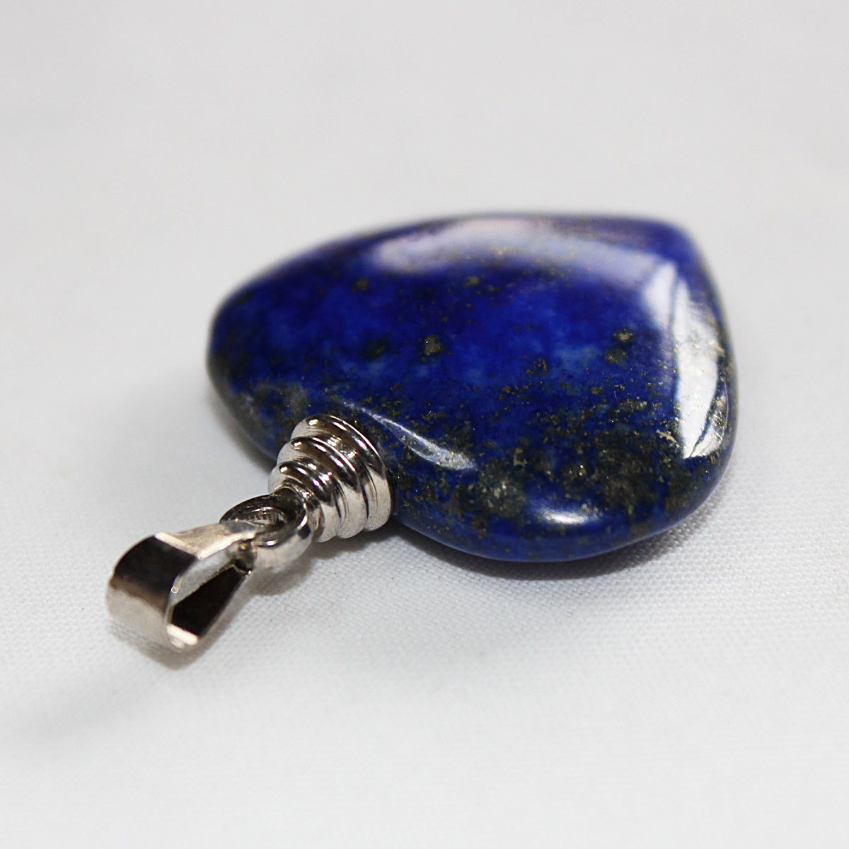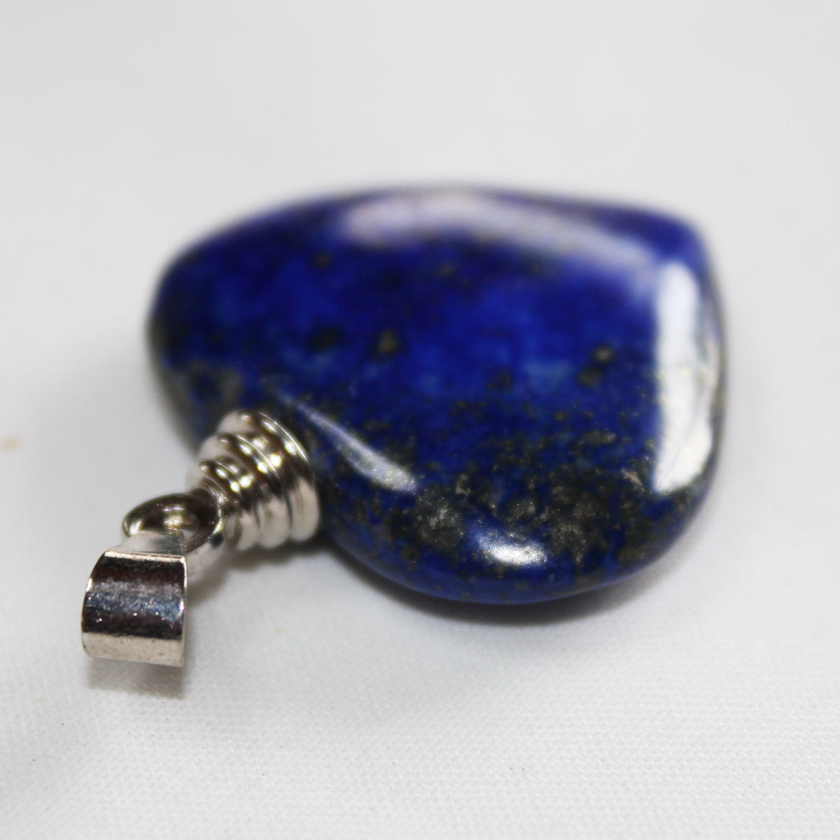●深い藍色の中に金色のパイライトが流れる神秘的なラピスラズリをハート型に磨いたペンダントトップで、お出かけの際の胸元に、また”幸運の石”・”知性の石”・災いを回避し最高の幸運をもたらす”聖なる石”としてのパワーをいつも身近に、バッグに入れてお供にどうでしょう。