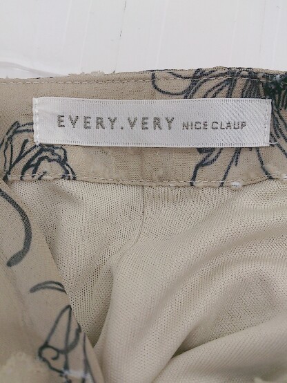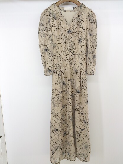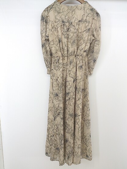 ◇ Every very nice claup 総柄 八分袖 膝下丈 ワンピース サイズF ベージュ系 ブラック レディース P