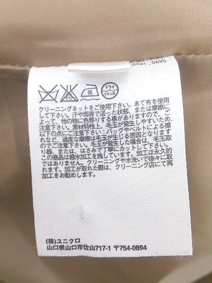 ■ UNIQLO ユニクロ 長袖 ノーカラー コート サイズL キャメル レディース