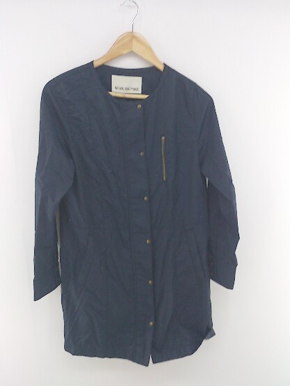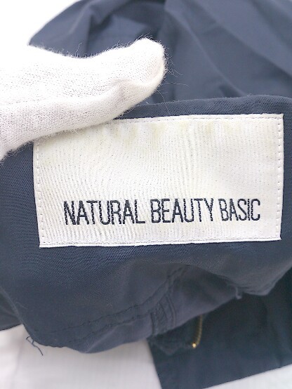 ◇ NATURAL BEAUTY BASIC ナチュラルビューティーベーシック ノーカラー 長袖 ジャケット サイズS ネイビー レディース P