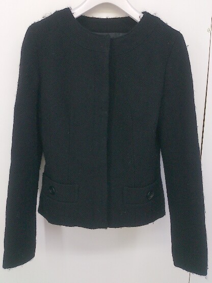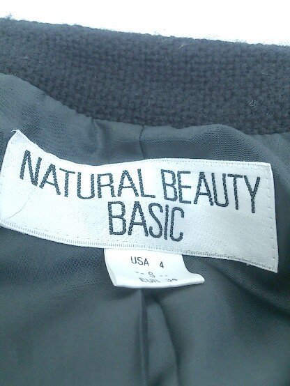 ◇ NATURAL BEAUTY BASIC ナチュラルビューティーベーシック 長袖 ノーカラー ジャケット サイズS ブラック レディース