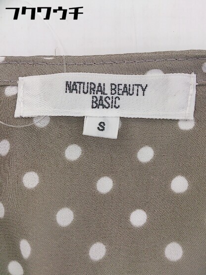 ◇ NATURAL BEAUTY BASIC サテン調 水玉 ドット フレンチスリーブ ミニ ワンピース サイズ S ベージュ ホワイト レディース