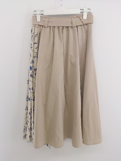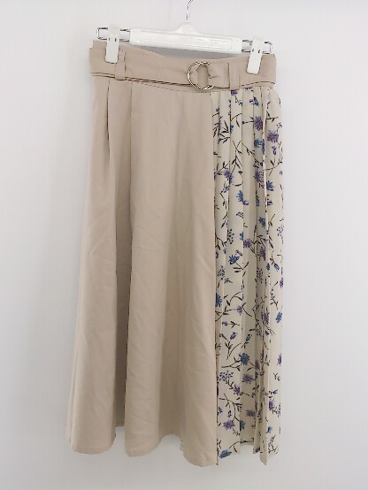 ◇ ◎ one way ワンウェイ ボタニカル 膝下丈 フレア スカート サイズM ベージュ パープル マルチ レディース P