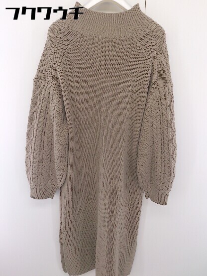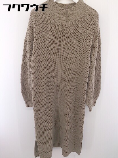 ◇ GLOBAL WORK グローバルワーク ハイネック スリット 長袖 膝下丈 ニット ワンピース サイズM ベージュ レディース