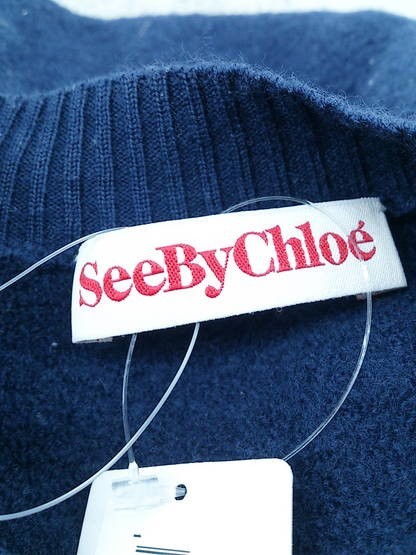 ◇ SEE BY CHLOE シーバイクロエ ウール ニット 七分袖 セーター サイズF 36 I 40 ネイビー レディース