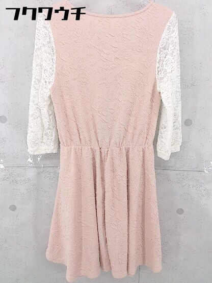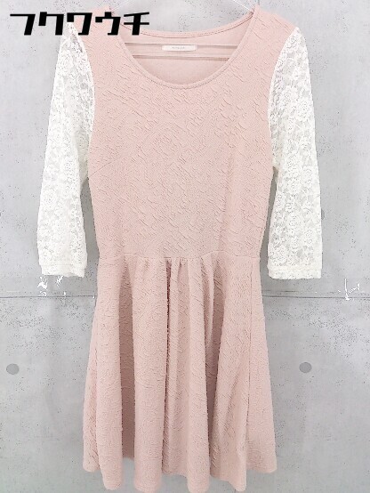 ◇ RETROGIRL レトロガール レース 切り替え 七分袖 ミニ ワンピース ピンク アイボリー系 レディース
