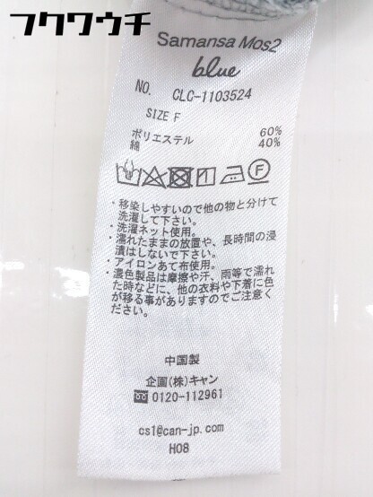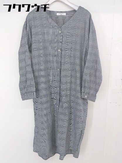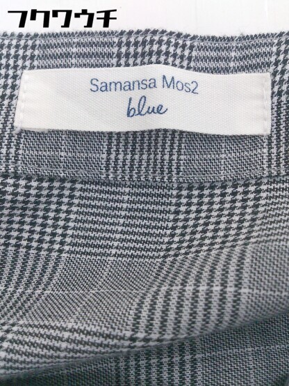 ◇ ◎ Samansa Mos2 blue サマンサモスモス ブルー ベルト付 チェック 長袖 膝丈 ワンピース サイズF グレー レディース