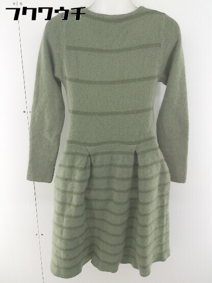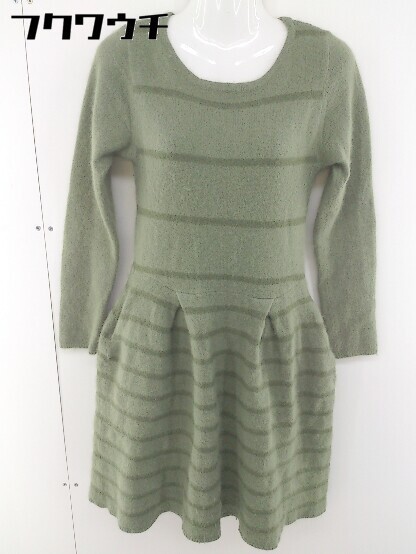 ◇ URBAN RESEARCH ボーダー アンゴラ混 ウール 長袖 膝下丈 ニット ワンピース サイズ ONE グリーン レディース