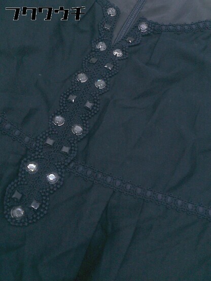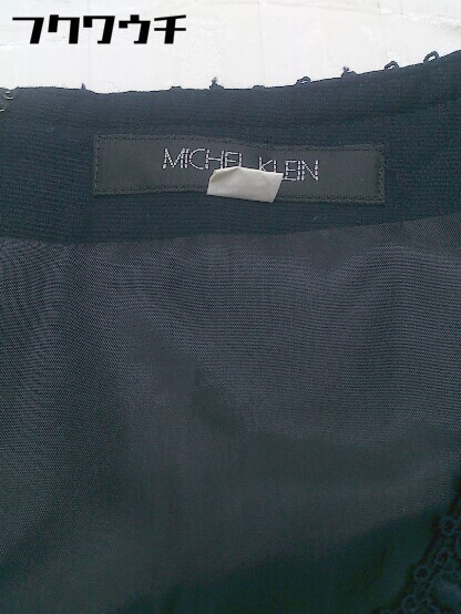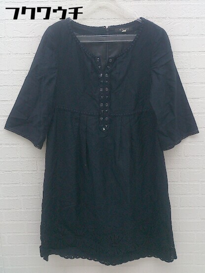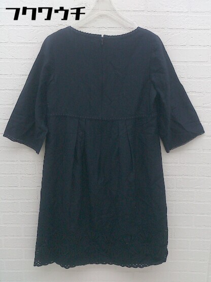 ◇ MICHEL KLEIN ミッシェルクラン ストーン 七分袖 膝丈 ワンピース サイズ38 ネイビー レディース