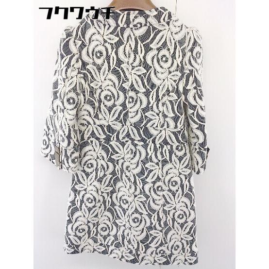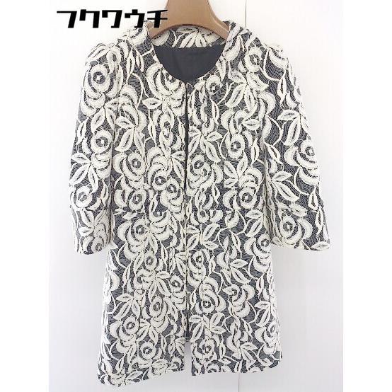 ■ NINE ナイン 総柄 レース 長袖 ノーカラー コート サイズ2 アイボリー ブラック レディース