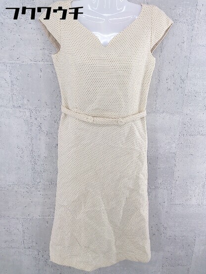 ◇ ◎ SunaUna スーナウーナ ウエストリボン付 半袖 膝下丈 ワンピース サイズ38 ベージュ レディース