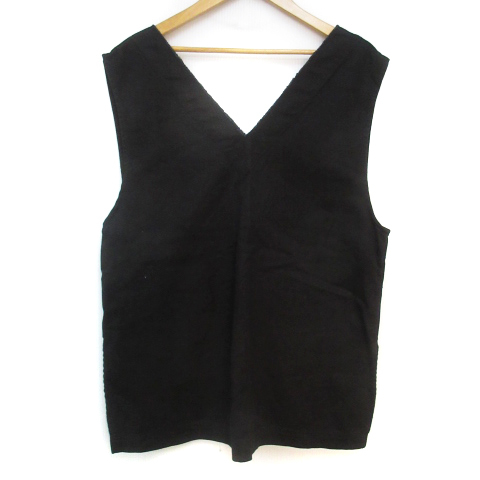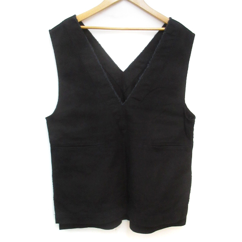 ローリーズファーム LOWRYS FARM デニムベスト プルオーバー Vネック サイドスリット 無地 F 黒 ブラック /FF7 レディース
