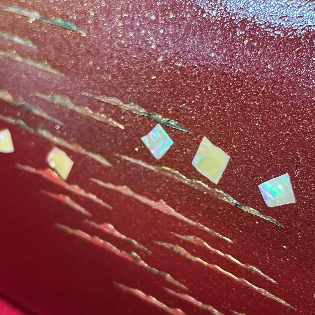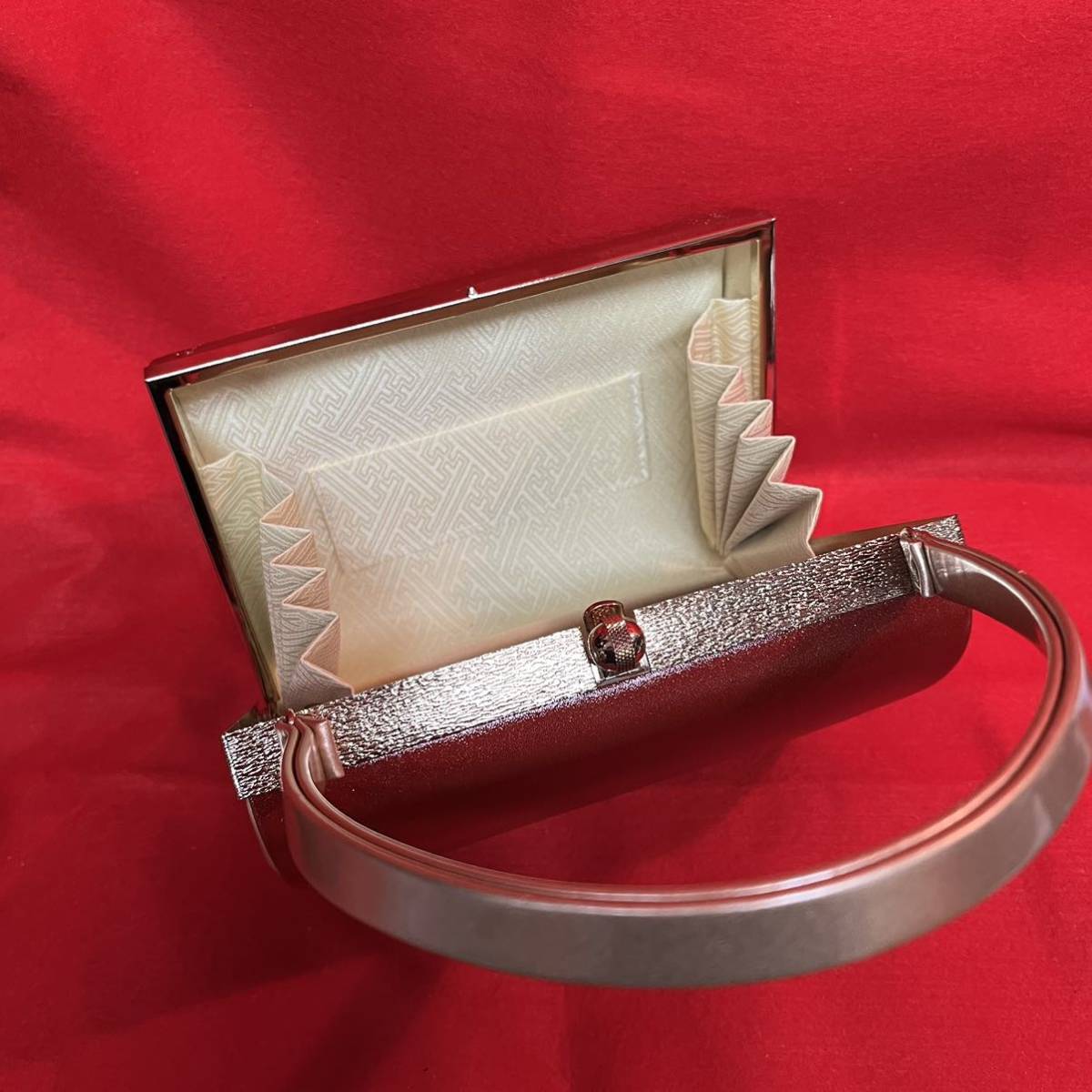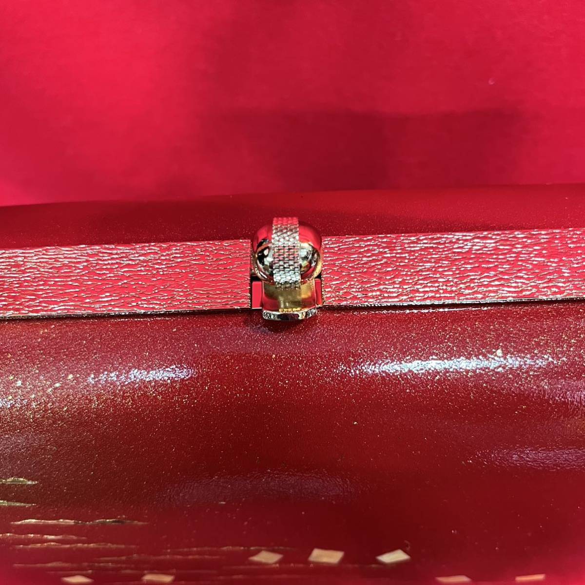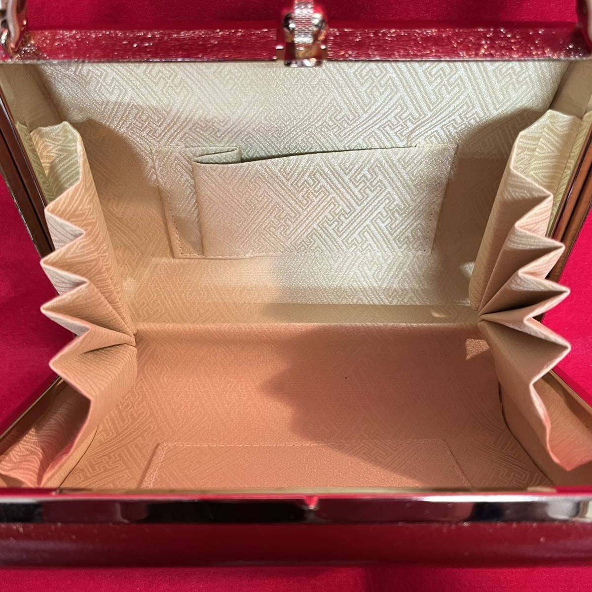 ☆美品☆ 和装バッグ 赤丹 金彩 螺鈿 霞雲紋様 金留め具 フォーマル 結婚式 振袖 トートバッグ 和装小物 (02036並