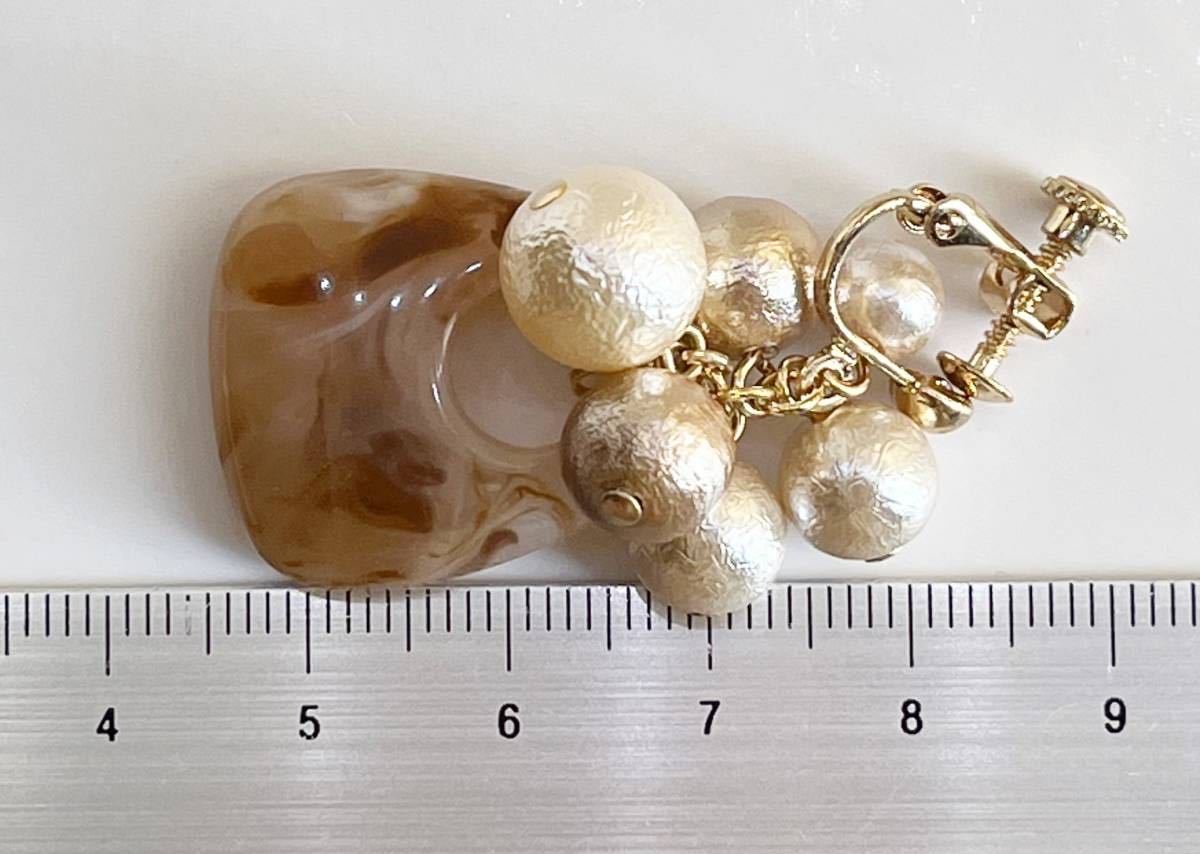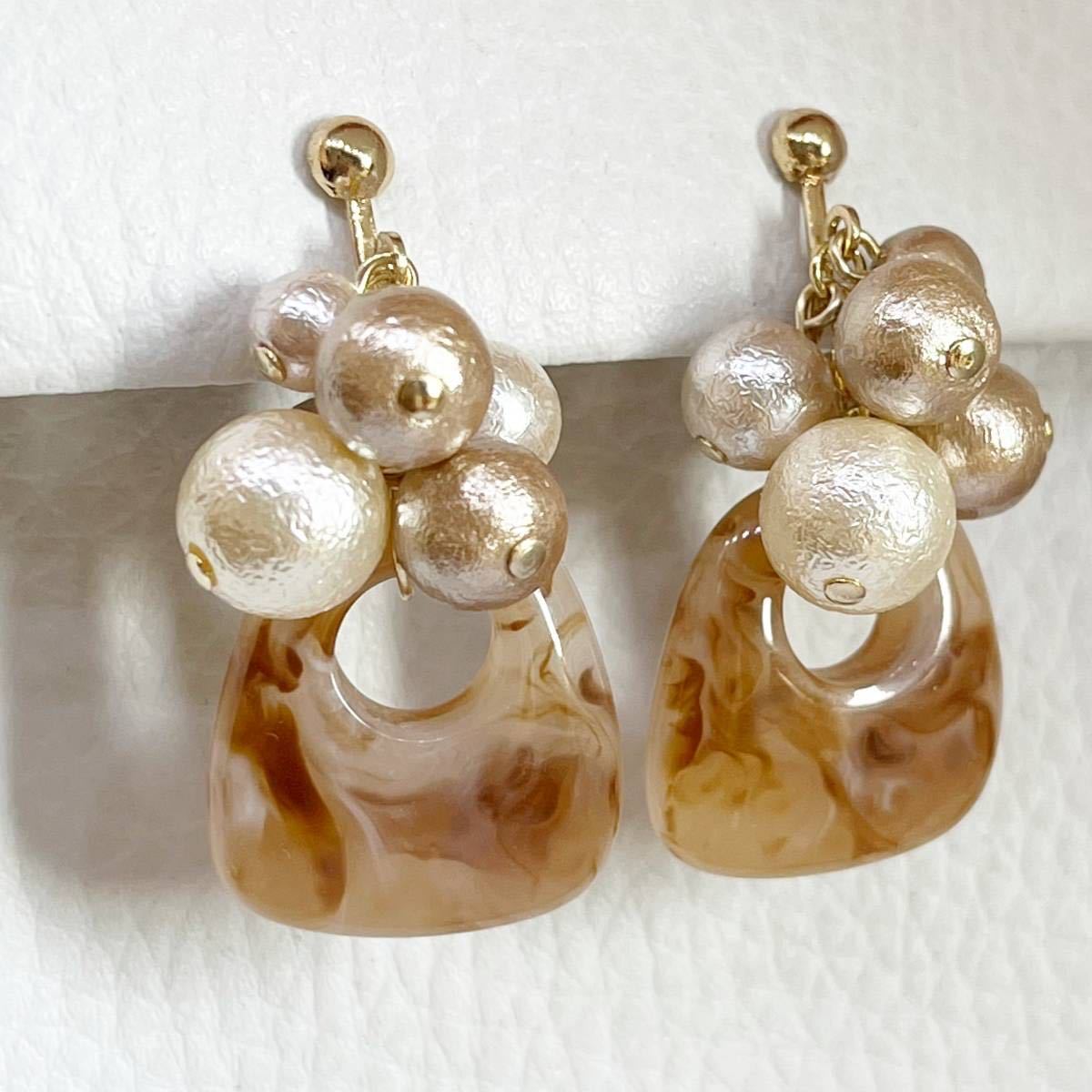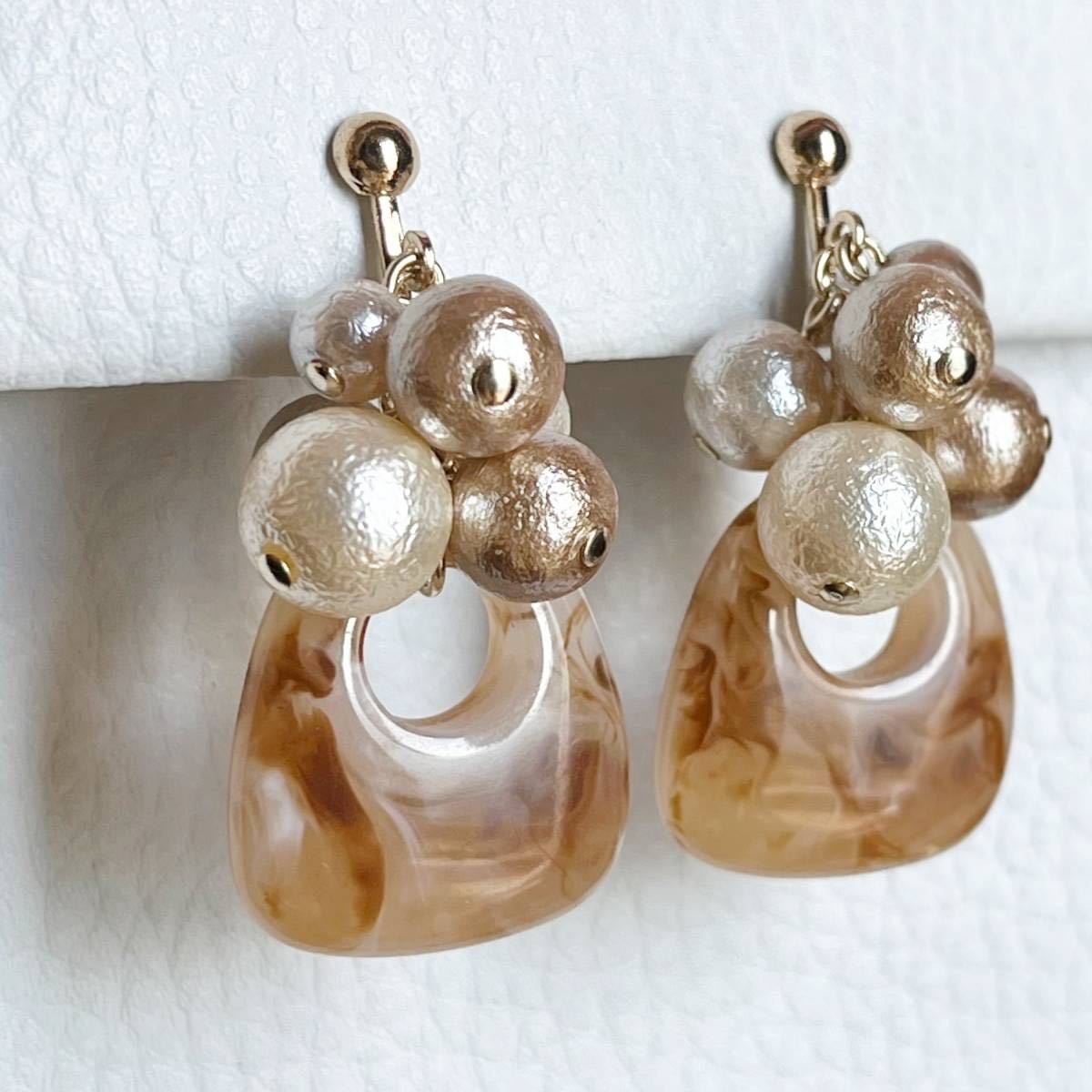 金具変更可*ブラウン系アクリル&パール・イヤリング