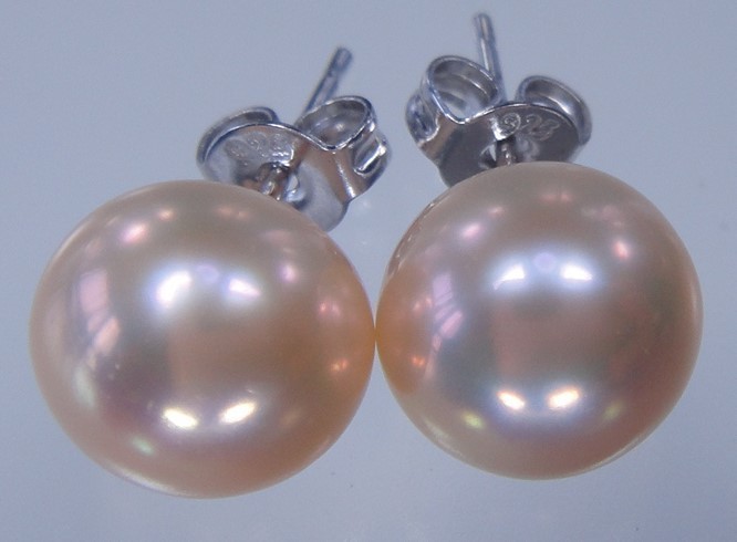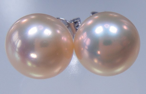 サイズピアス 真珠玉:9.0~9.5mm 形:正面からは真円ですが、横からは若干平べったい形です。