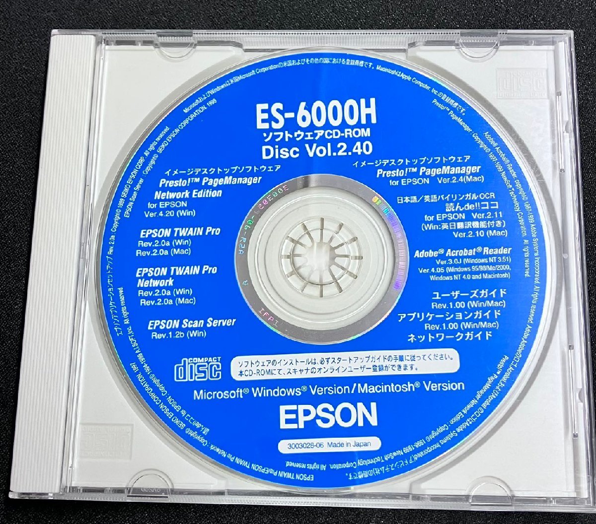 商品名 | EPSON ES-6000H ソフトウェアCD-ROM Vol.2.40 |
