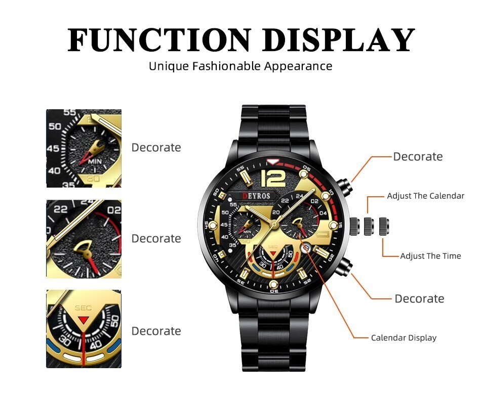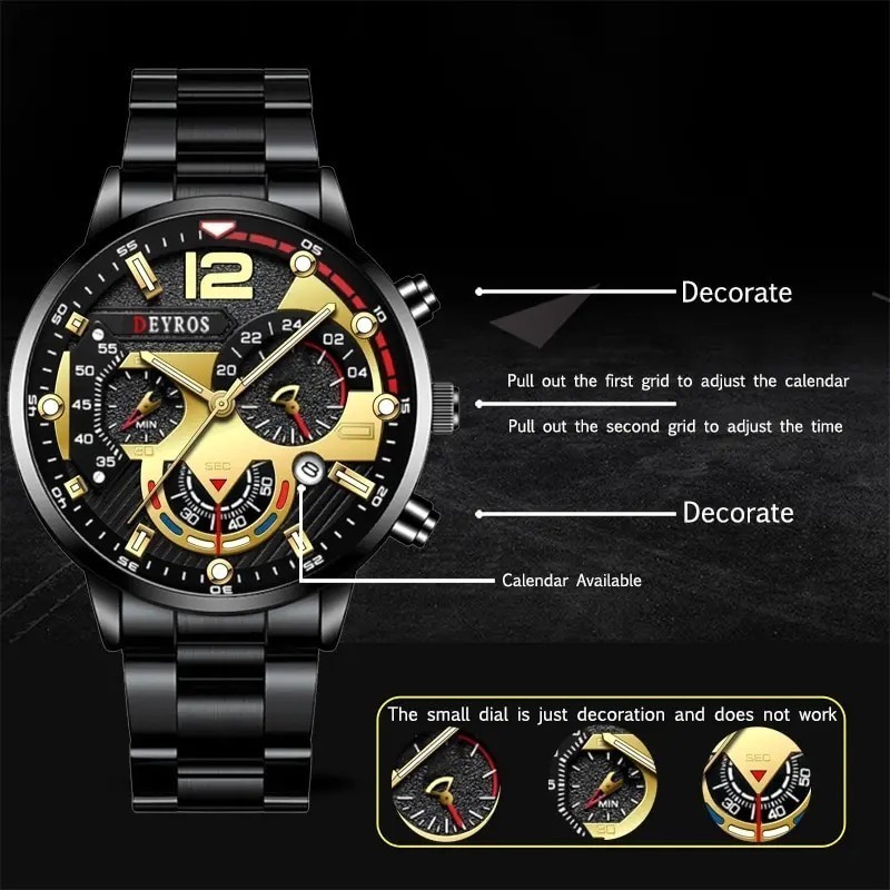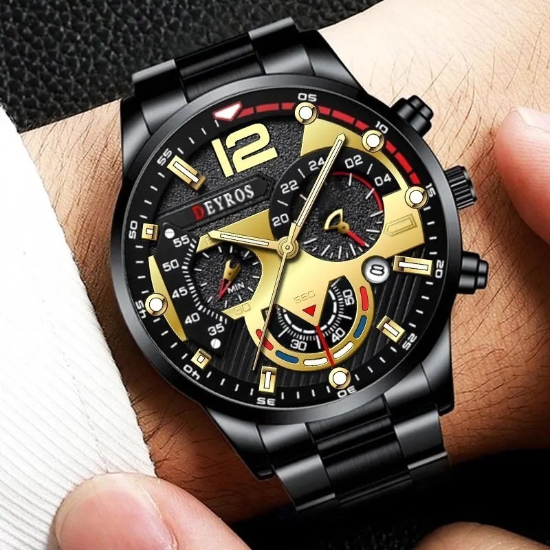 1円〜新品新作 海外限定 高級腕時計トップブランド ゴールド スポーツウォッチメンズ クォーツ日付ファッション 光沢 日本未発売☆