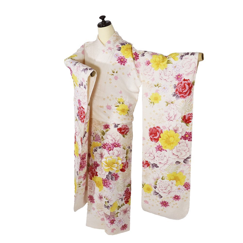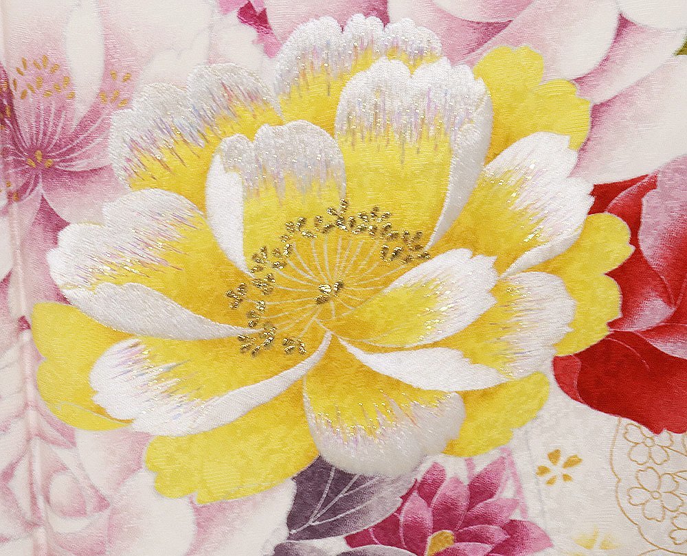 | 色・柄 | 本振袖 袷 丹後縮緬地 白地 刺繍牡丹 薔薇・桜・蝶 (写真では上手く色が出ない場合があります。ご了承下さい) 写真の枚数が多いので一度パソコンでご覧ください。 |