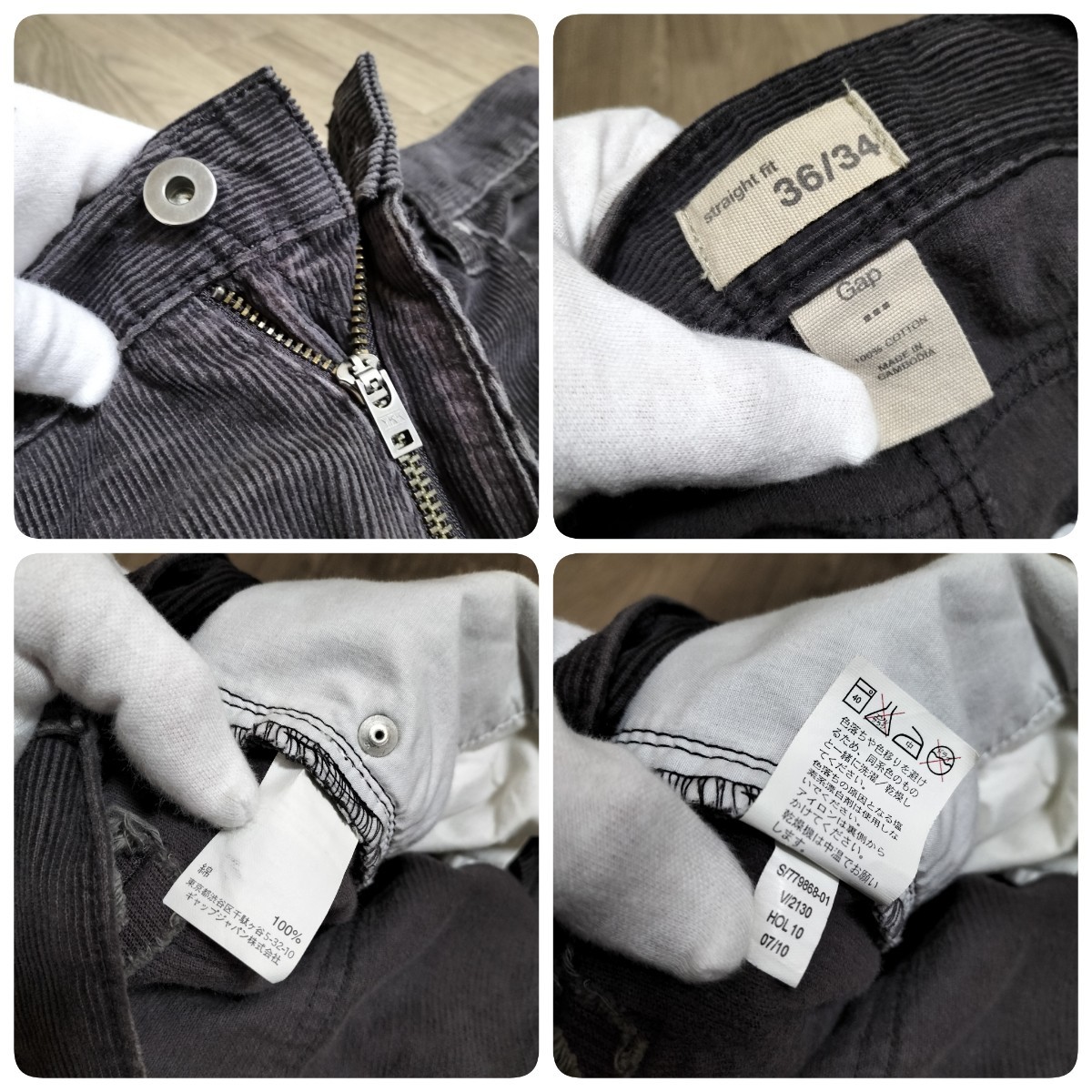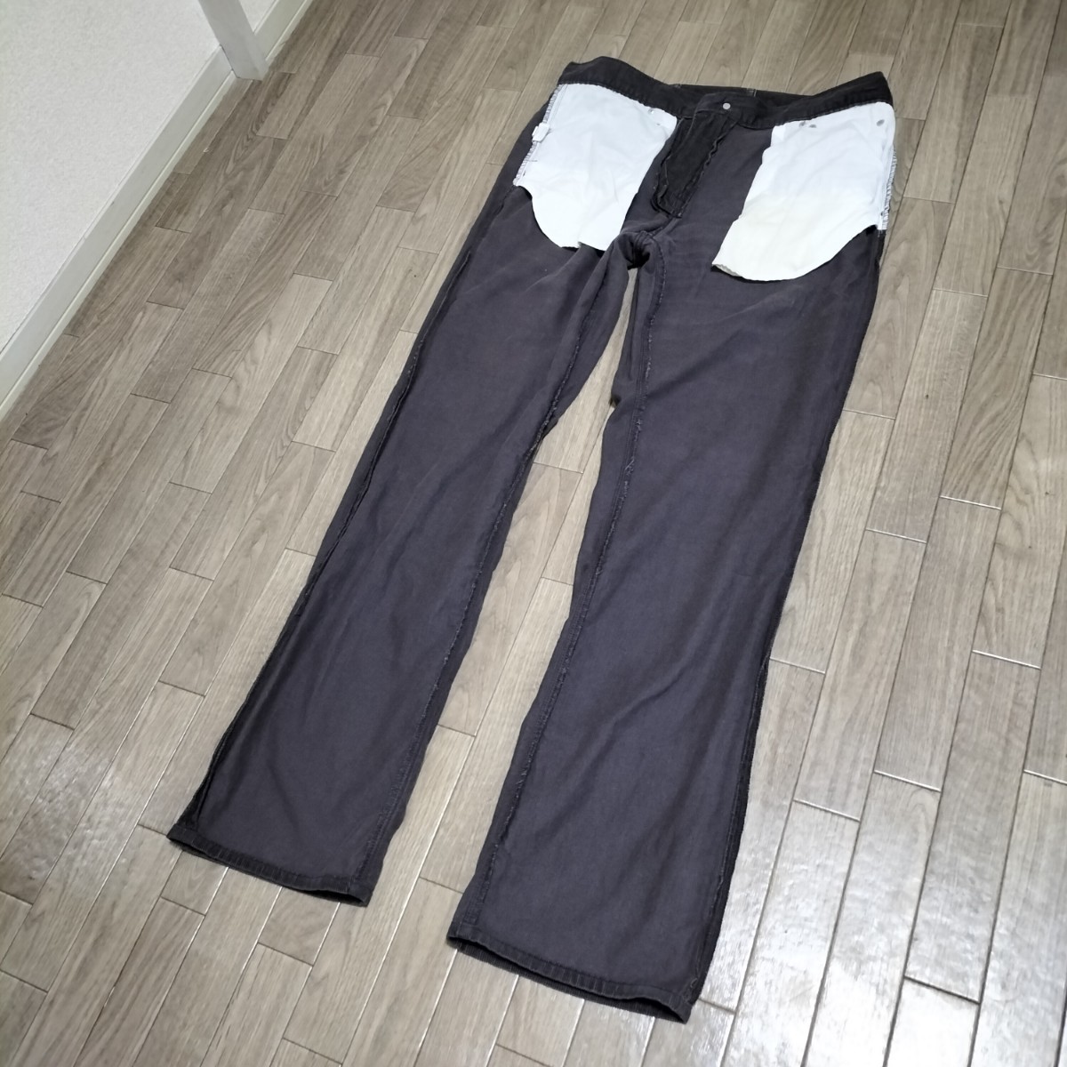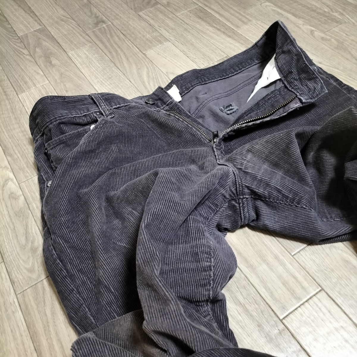 右バックポケット下部辺りのコーデュロイが若干剥がれ生地が薄くなっているところが御座います。