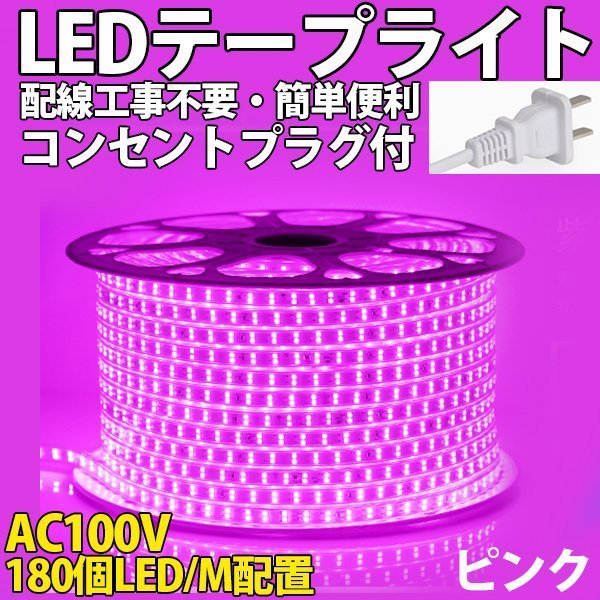 防水防塵 LEDテープライト PSE認証済み 家庭用 AC100V 70M 180SMD/M 配線工事不要 簡単便利 ピンク 間接照明 棚照明 二列式